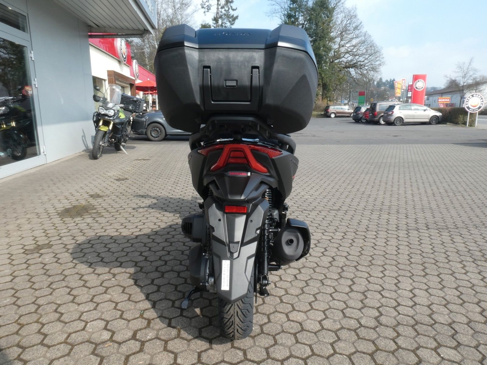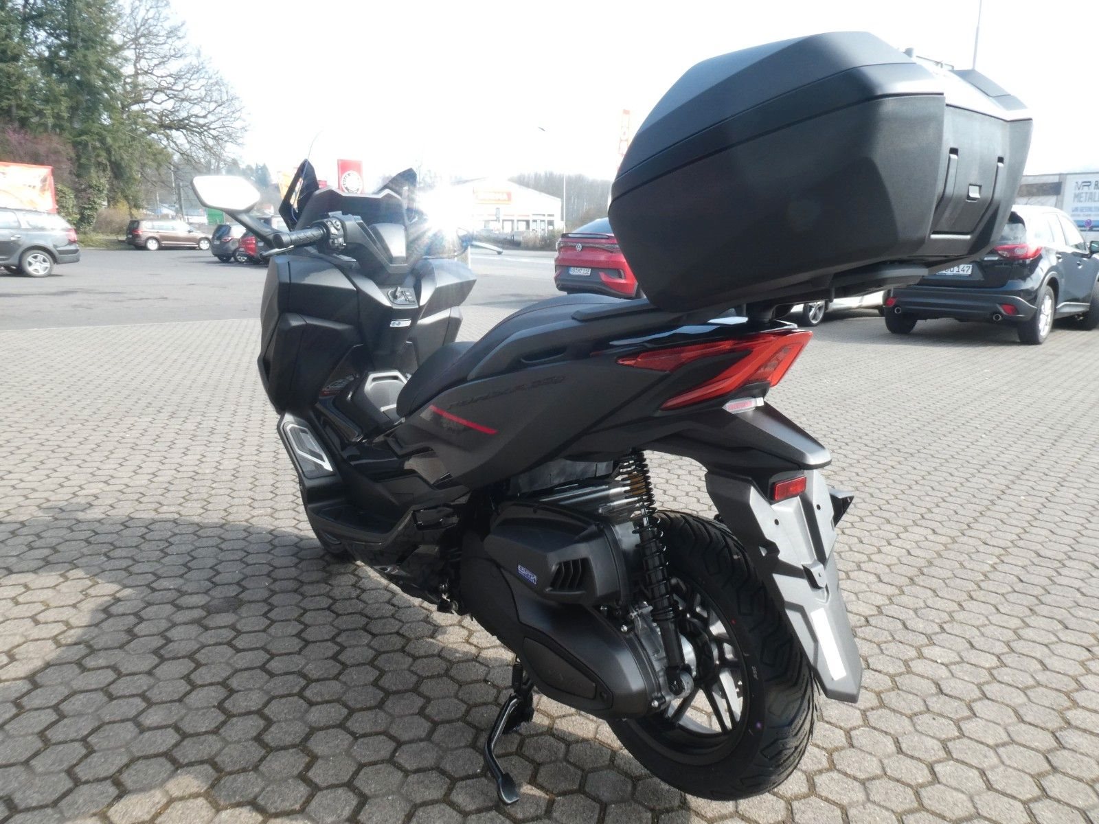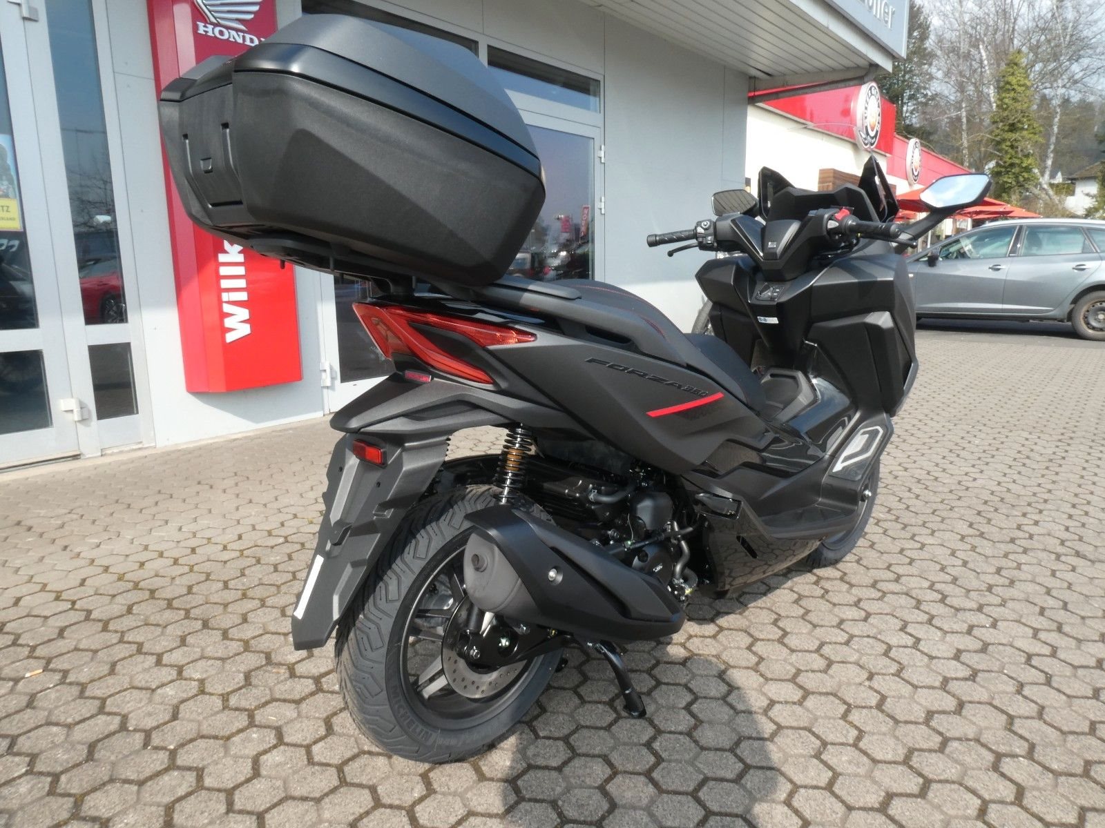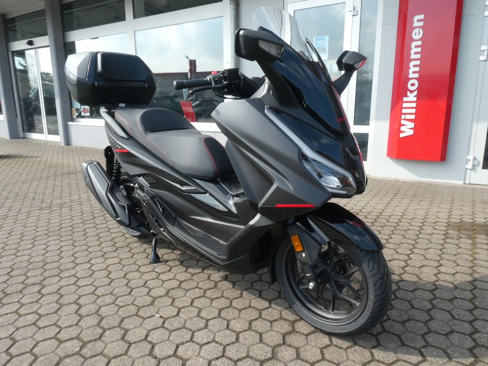 ABS Katalysator Elektrostarter Fahrzeugbeschreibung Honda Forza 350 SE 2025 inkl. Smart-Key Topcase ! Aktion Sonderfinanzierung ! Einfach mit 50% Anzahlung starten. 23 Monate lang ohne Zinsen und Raten die große Freiheit genießen. Danach entweder Motorrad zurückgeben, Restbetrag zahlen oder anschlussfinanzieren. Nicht mit anderen Aktionen kombinierbar. Anzahlung 3.595,00 Euro - Restbetrag nach 24 Monaten 3.595,00 Euro Angebot gültig für Privatkunden bis auf Weiteres, bei entsprechender Bonität Ein unverbindliches Angebot der Honda Bank GmbH, Hanauer Landstraße 222-226, 60314 Frankfurt am Main Finanzierung und Inzahlungnahme möglich ! Angegebener Preis ist inkl. Liefernebenkosten des Herstellers. Der Forza 350 ist ein echter Sport-GT-Roller mit kraftvoller Motorleistung, HSTC für sicheres Fahren und exzellenter Kraftstoffeffizienz - und das alles in einem schlanken Design mit großzügigem Stauraum unter dem Sitz. Mit dem 5-Zoll TFT-Display und der Honda RoadSync-Integration bleibst du den ganzen Tag über in Verbindung und hast während der Fahrt nahtlosen Zugang zu Anrufen, Musik und Navigation. Verkleidung und Scheinwerfer weisen den Weg Der Forza 350 setzt hohe Designmaßstäbe und ist ein flinkes Gesamtkunstwerk, das mit ausgezeichneter Aerodynamik und atemberaubendem Aussehen überzeugt. Die neu gestaltete Frontverkleidung, die LED-Scheinwerfer und das Rücklicht nach dem Vorbild des Topmodells Forza 750 ergeben ein elegantes Gesamtbild und leiten den Fahrtwind so über die Maschine, dass der Fahrer auch bei schneller Fahrweise kaum Winddruck spürt, was den Fahrkomfort deutlich verbessert. Und dank des elektrischen Schirms kannst du auf Knopfdruck zwischen Windschutz und einer kühlenden Brise wählen. Mehr wagen, mehr erreichen Mehr Leistung heißt, dass du mehr erreichen und weiter kommen kannst. Der flüssigkeitsgekühlte SOHC-Motor leistet 21,5 kW zum Mitschwimmen auf der Autobahn und liefert ein Drehmoment von 31,6 Nm für rasche Ampelstarts im Stadtverkehr. Er ist EURO5+ konform und hängt dank seines äußerst geschmeidigen V-Matic-Getriebes sauber am Gas. Hinzu kommt, dass du weniger Zeit an der Zapfsäule verbringen wirst, denn mit einer Tankfüllung kommt der Forza 350 bis zu 344 km weit. Die Überholspur gehört dir Das 5-Zoll-TFT-Cockpit kombiniert einen eleganten analogen Tachometer und Drehzahlmesser mit einer modernen Digitalanzeige. Mit Honda RoadSync kannst du während der Fahrt ganz einfach auf Anrufe, Musik und Navigation zugreifen. Der Smart Key funktioniert wie von allein - behalte ihn einfach in der Tasche. Außerdem verbessert die Honda Traktionskontrolle (HSTC) den Hinterradgrip und bietet dir bei allen Bedingungen mehr Sicherheit. Zweirad-Center Zöller - Seit über 45 Jahren ! Wir sind Vertragshändler für Honda, Suzuki, Kymco, Hyosung, Voge und Mondial ! Motorräder - Roller - Quad/ATV - UTV/SSV Motorradbekleidung und Zubehör Alle Angebote und Fahrzeuge auf www.zcz.de ! Zweirad-Center Zöller Bahnhofstr. 34 36110 Schlitz Tel: 06642/1666 Fax: 06642/6020 info(at)zcz.de - www.zcz.de Fahrzeugdetails