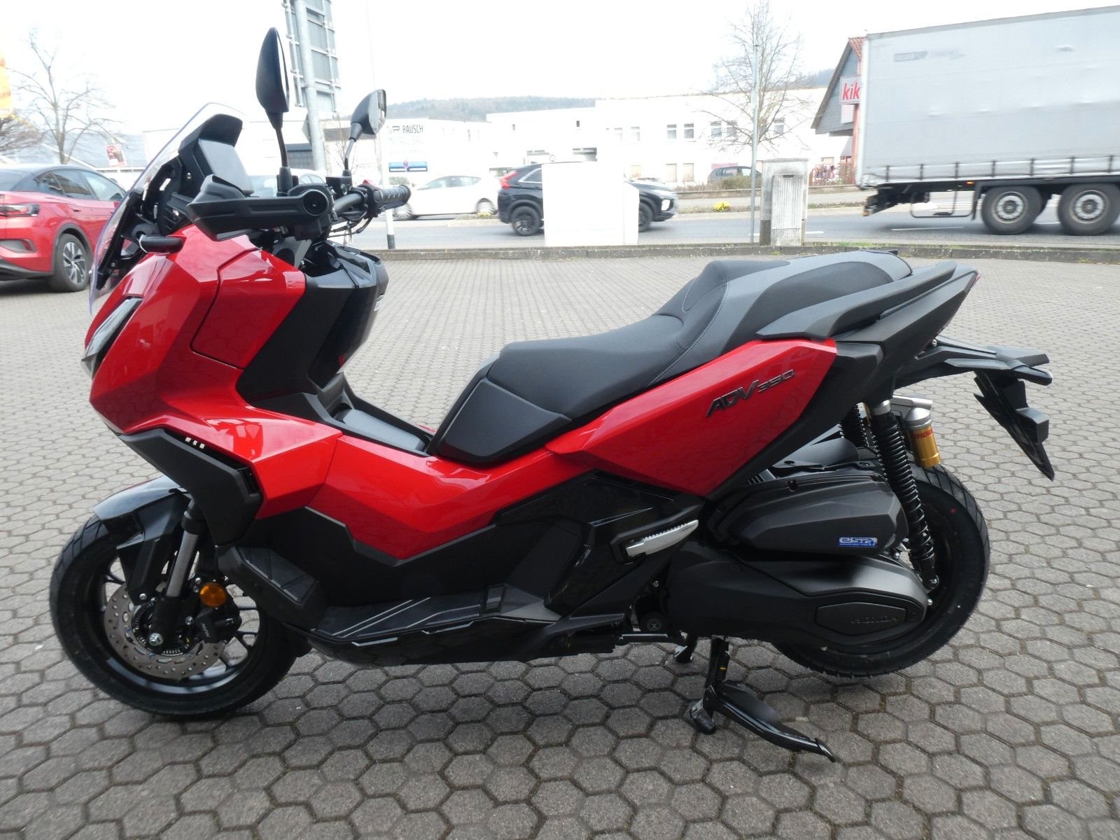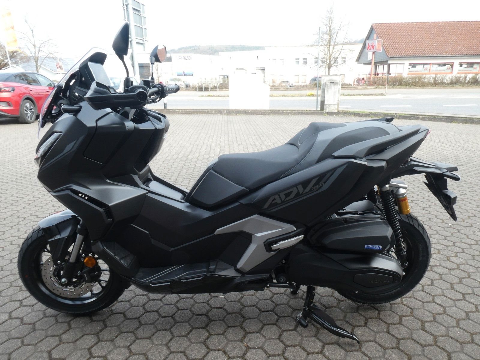 ABS Katalysator Elektrostarter Fahrzeugbeschreibung Honda ADV 350 2025 Lieferzeiten auf Anfrage ! Finanzierung und Inzahlungnahme möglich ! Angegebener Preis ist inkl. Liefernebenkosten des Herstellers. Zuversicht. Fühle es, wenn du den ADV350 Scooter fährst. Sportliche Motorleistung trifft auf ein robustes, leichtgängiges Fahrwerk und eine neue Hinterradaufhängung für mehr Komfort, um das Gelände mit Leichtigkeit zu bewältigen. Mit der automatischen Blinkerabschaltung ist der ADV350 nicht nur sicher, sondern auch funktional. Es geht aber nicht nur um Muskeln. Mit dem außerordentlich übersichtlichen 5-Zoll-TFT-Cockpit hast du während der Fahrt stets alles im Blick und dank Honda RoadSync-Integration jederzeit Zugriff auf Telefonanrufe, Musik und Navigation. Der ADV350. Auf diesen Roller kannst du dich verlassen. Ein Roller für Entdeckungsreisen Erlebe den ADV350, wo die große Scooter-Technologie auf die Abenteuer-DNA unseres X-ADV trifft. Er wiegt nur 186 kg und ist mit einem starken Motor ausgestattet, der für müheloses Fahren in der Stadt sorgt. Die RR-Hinterradaufhängung mit langem Federweg sorgt für bessere Leistung und mehr Komfort. Der ADV350 meistert leichte Off-Road-Pfade und unbefestigte Wege mit Leichtigkeit, dank seiner zusätzlichen Bodenfreiheit und den Blockprofilreifen. Wohin dein Tag auch führt, der ADV350 ist bereit, dich dorthin zu bringen. Durchdacht und praktisch Während sich der ADV350 durch sein robustes Abenteuerdesign auszeichnet, haben wir dafür gesorgt, dass er dem treu bleibt, was große Roller ausmacht: Komfort und Praktikabilität. Der Sitz bietet guten Halt und ist nur 795 mm hoch, damit du mit den Füßen bequem den Boden erreichst. Unter den Sitzen gibt es 48 Liter Stauraum - genug für zwei Integralhelme - und ein Handschuhfach mit USB-Typ-C-Anschluss. Die LED-Beleuchtung im Fach unter dem Sitz verbessert im Dunkeln die Übersicht. Der Windschirm lässt sich in vier Stufen verstellen, sodass du die Höhe und den Winkel an deine Bedürfnisse anpassen kannst. In der hohen Einstellung wird der Luftstrom um deine Schultern herumgeleitet und verringert so bei längeren Fahrten die Ermüdung. Niedrig eingestellt, lässt sie eine kühlende Brise zu, perfekt für Fahrten in der Stadt. Für einen reibungslosen Tagesablauf Kann es losgehen? Behalte den Smart Key einfach in deiner Tasche - er aktiviert die Zündung, öffnet den Sitz, passt zum optionalen Smart Top Case und verriegelt dieses, wenn du weggehst. Das 5-Zoll-TFT-Cockpit ist ein echtes Highlight und bietet auf einen Blick klare, detaillierte digitale Informationen. Mit Honda RoadSync bleibst du auch unterwegs in Verbindung und kannst dein AndroidT- oder iOST-Gerät für Anrufe und Musik verbinden. Die gesamte Beleuchtung ist in LED-Technik ausgeführt: markante Doppelscheinwerfer, Notbremssignal (ESS) und automatische Blinkerabschaltung. So wirst du gesehen und bist auf der Straße sicher unterwegs. Sportliche Leistung mit Vielseitigkeit Dank verschiedener Technologien zur Reibungsminderung erzielt das eSP+ Triebwerk (enhanced Smart Power+) mit 330 cm Hubraum, vier Ventilen und obenliegender Nockenwelle erstklassige Leistungs- und Verbrauchswerte. Das bedeutet schnelle, verkehrsnahe Beschleunigung und viel Leistung für längere Strecken auf der Autobahn oder alles, was der Tag sonst noch bringt. Da sich die Fahrbedingungen schnell ändern können, steuert HSTC automatisch die Traktion des Hinterrads, um dir das Vertrauen zu geben, weiterzufahren. Verbringe weniger Zeit an der Tankstelle mit einem Kraftstoffverbrauch von 3,4 l/100 km (WMTC) und einem 11,7-Liter-Tank, der eine mögliche Reichweite von 340 km bietet. Zweirad-Center Zöller - Seit über 45 Jahren ! Wir sind Vertragshändler für Honda, Suzuki, Kymco, Hyosung, Voge und Mondial ! Motorräder - Roller - Quad/ATV - UTV/SSV Motorradbekleidung und Zubehör Alle Angebote und Fahrzeuge auf www.zcz.de ! Zweirad-Center Zöller Bahnhofstr. 34 36110 Schlitz Tel: 06642/1666 Fax: 06642/6020 info(at)zcz.de - www.zcz.de Fahrzeugdetails