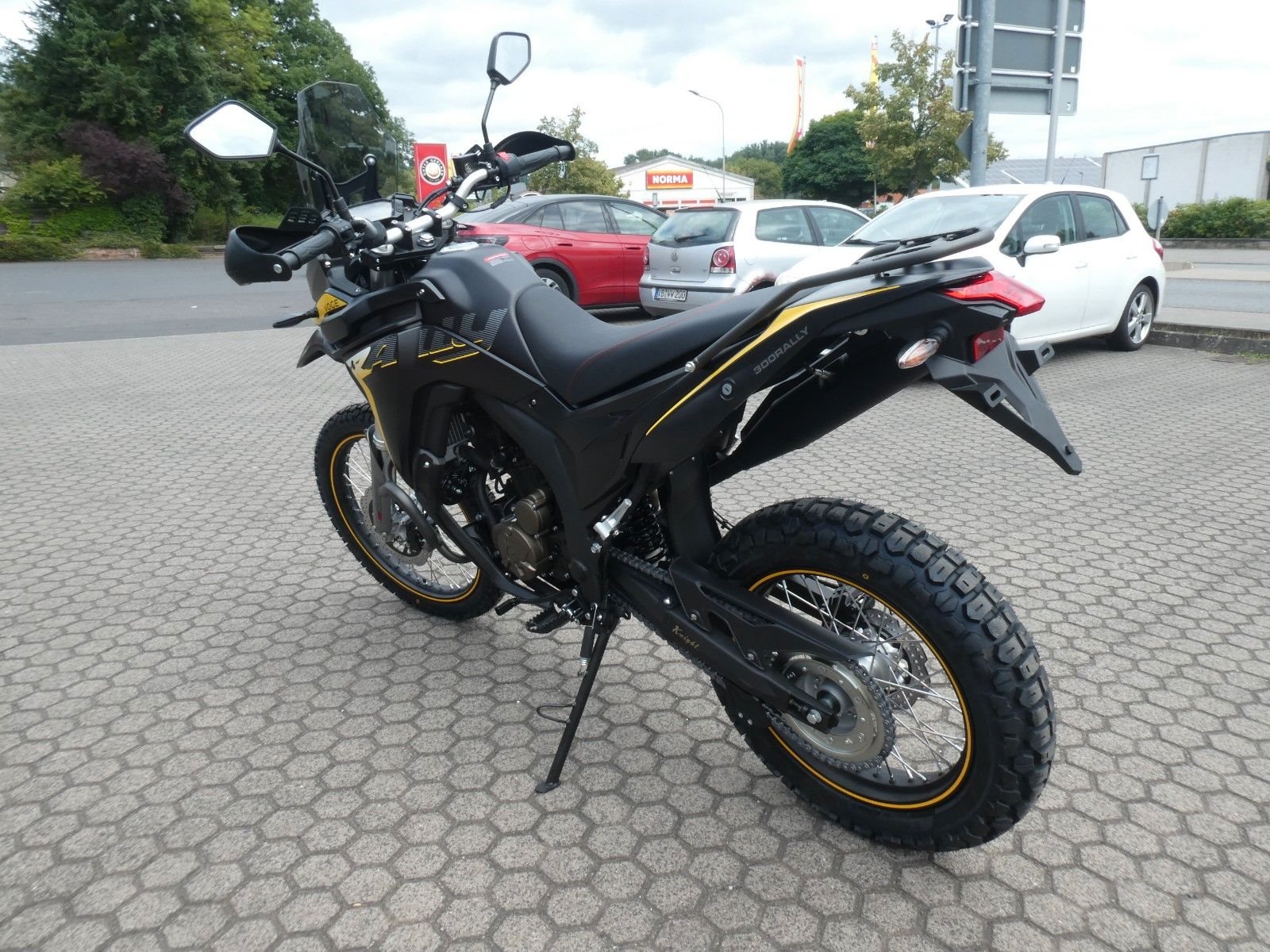ABS Katalysator Elektrostarter Fahrzeugbeschreibung Die neue Voge 300 Rally E5+2025 Vorführfahrzeug steht zur Probefahrt bereit. in Schwarz und weiß erhältich Lieferzeiten auf Anfrage !!! Finanzierung und Inzahlungnahme möglich ! Angebener Preis ist inkl. Liefernebenkosten des Herstellers. Die VOGE 300 Rally ist ein sportliches und vielseitiges Einsteiger-Geländemotorrad, das für Abenteuer abseits befestigter Straßen konzipiert wurde. Mit ihrem robusten Aufbau, einem vollwertigen Offroad-Fahrwerk und dem durchzugsstarken 292-ccm-Einzylindermotor bietet sie alles, was es für spontane Entdeckungstouren im Gelände braucht. Dank des niedrigen Gewichts und der gut kontrollierbaren Leistung ist sie auch für Einsteiger leicht zu beherrschen - ideal für erste Erfahrungen im Offroad-Bereich.Zur Ausstattung gehören eine Upside-down-Gabel, ein Zentralfederbein mit Ausgleichsbehälter und eine hohe Bodenfreiheit - alles Elemente, die auch auf anspruchsvollen Wegen für ein stabiles, sicheres Fahrgefühl sorgen. Grobstollige Reifen liefern den nötigen Grip, während das klare LCD-Display alle wichtigen Informationen übersichtlich anzeigt. LED-Beleuchtung rundum sorgt für Sichtbarkeit bei allen Lichtverhältnissen.Das Fachmagazin Motorrad hebt die 300 Rally in einem aktuellen Bericht als bezahlbares Offroad-Bike mit echtem Rallye-Charakter hervor - ein Motorrad, das Geländeambitionen und Alltagstauglichkeit gekonnt verbindet. Die VOGE 300 Rally richtet sich an alle, die ein geländegängiges Motorrad mit Charakter, solider Technik und starkem Preis-Leistungs-Verhältnis suchen - ob für den Einstieg oder als neue Herausforderung abseits des Asphalt. HIGHLIGHTS: