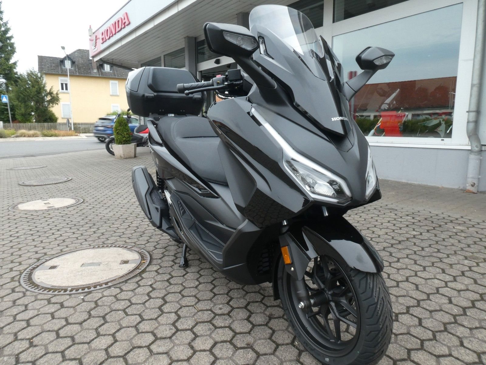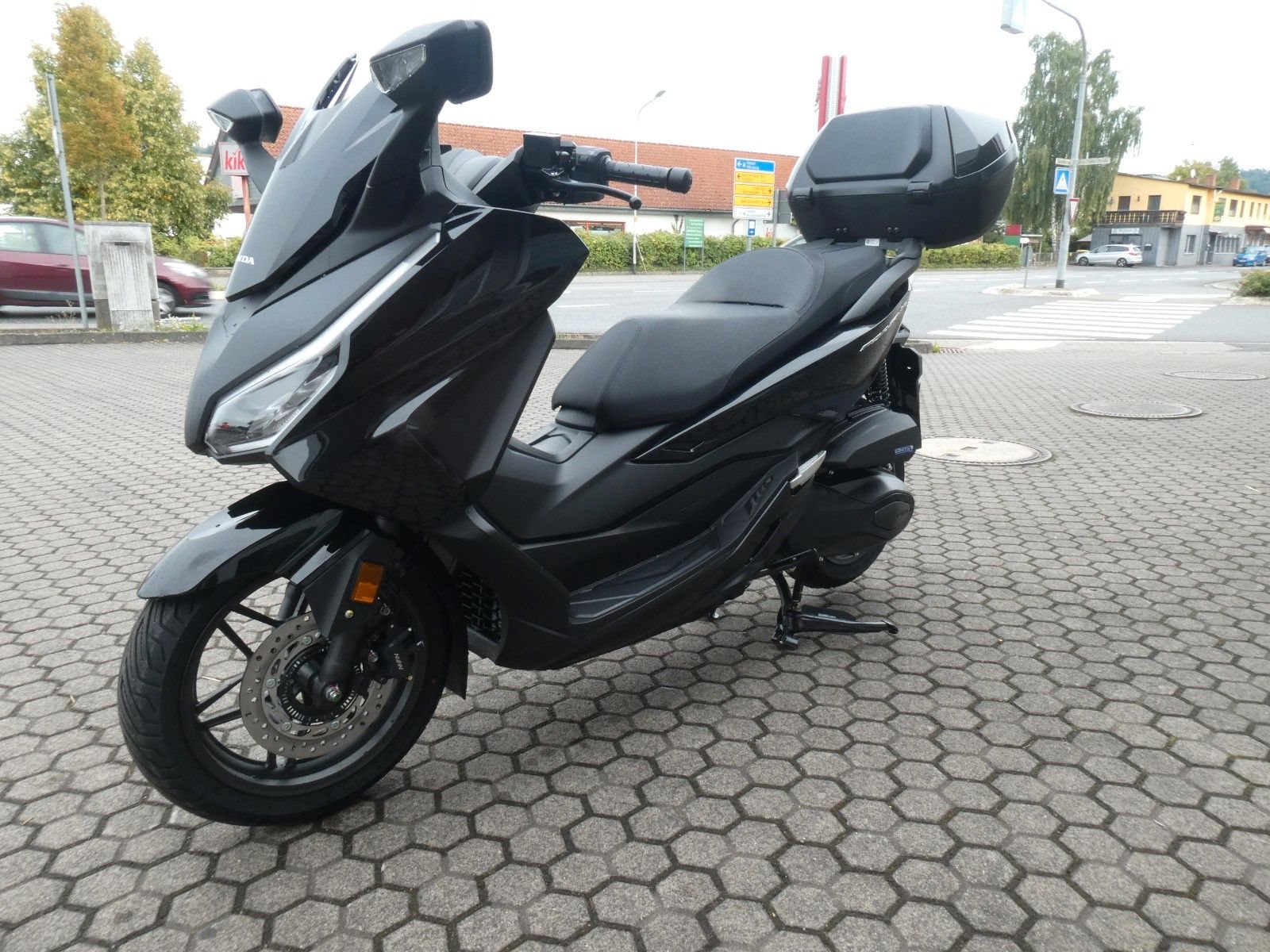 ABS Katalysator Elektrostarter Fahrzeugbeschreibung Honda Forza 350 2025 inkl. Smart-Key Topcase ! Finanzierung und Inzahlungnahme möglich ! Angegebener Preis ist inkl. Liefernebenkosten des Herstellers. Der Forza 350 ist ein echter Sport-GT-Roller mit kraftvoller Motorleistung, HSTC für sicheres Fahren und exzellenter Kraftstoffeffizienz - und das alles in einem schlanken Design mit großzügigem Stauraum unter dem Sitz. Mit dem 5-Zoll TFT-Display und der Honda RoadSync-Integration bleibst du den ganzen Tag über in Verbindung und hast während der Fahrt nahtlosen Zugang zu Anrufen, Musik und Navigation. Verkleidung und Scheinwerfer weisen den Weg Der Forza 350 setzt hohe Designmaßstäbe und ist ein flinkes Gesamtkunstwerk, das mit ausgezeichneter Aerodynamik und atemberaubendem Aussehen überzeugt. Die neu gestaltete Frontverkleidung, die LED-Scheinwerfer und das Rücklicht nach dem Vorbild des Topmodells Forza 750 ergeben ein elegantes Gesamtbild und leiten den Fahrtwind so über die Maschine, dass der Fahrer auch bei schneller Fahrweise kaum Winddruck spürt, was den Fahrkomfort deutlich verbessert. Und dank des elektrischen Schirms kannst du auf Knopfdruck zwischen Windschutz und einer kühlenden Brise wählen. Mehr wagen, mehr erreichen Mehr Leistung heißt, dass du mehr erreichen und weiter kommen kannst. Der flüssigkeitsgekühlte SOHC-Motor leistet 21,5 kW zum Mitschwimmen auf der Autobahn und liefert ein Drehmoment von 31,6 Nm für rasche Ampelstarts im Stadtverkehr. Er ist EURO5+ konform und hängt dank seines äußerst geschmeidigen V-Matic-Getriebes sauber am Gas. Hinzu kommt, dass du weniger Zeit an der Zapfsäule verbringen wirst, denn mit einer Tankfüllung kommt der Forza 350 bis zu 344 km weit. Die Überholspur gehört dir Das 5-Zoll-TFT-Cockpit kombiniert einen eleganten analogen Tachometer und Drehzahlmesser mit einer modernen Digitalanzeige. Mit Honda RoadSync kannst du während der Fahrt ganz einfach auf Anrufe, Musik und Navigation zugreifen. Der Smart Key funktioniert wie von allein - behalte ihn einfach in der Tasche. Außerdem verbessert die Honda Traktionskontrolle (HSTC) den Hinterradgrip und bietet dir bei allen Bedingungen mehr Sicherheit. Zweirad-Center Zöller - Seit über 45 Jahren ! Wir sind Vertragshändler für Honda, Suzuki, Kymco, Hyosung, Voge und Mondial ! Motorräder - Roller - Quad/ATV - UTV/SSV Motorradbekleidung und Zubehör Alle Angebote und Fahrzeuge auf www.zcz.de ! Zweirad-Center Zöller Bahnhofstr. 34 36110 Schlitz Tel: 06642/1666 Fax: 06642/6020 info(at)zcz.de - www.zcz.de Fahrzeugdetails
