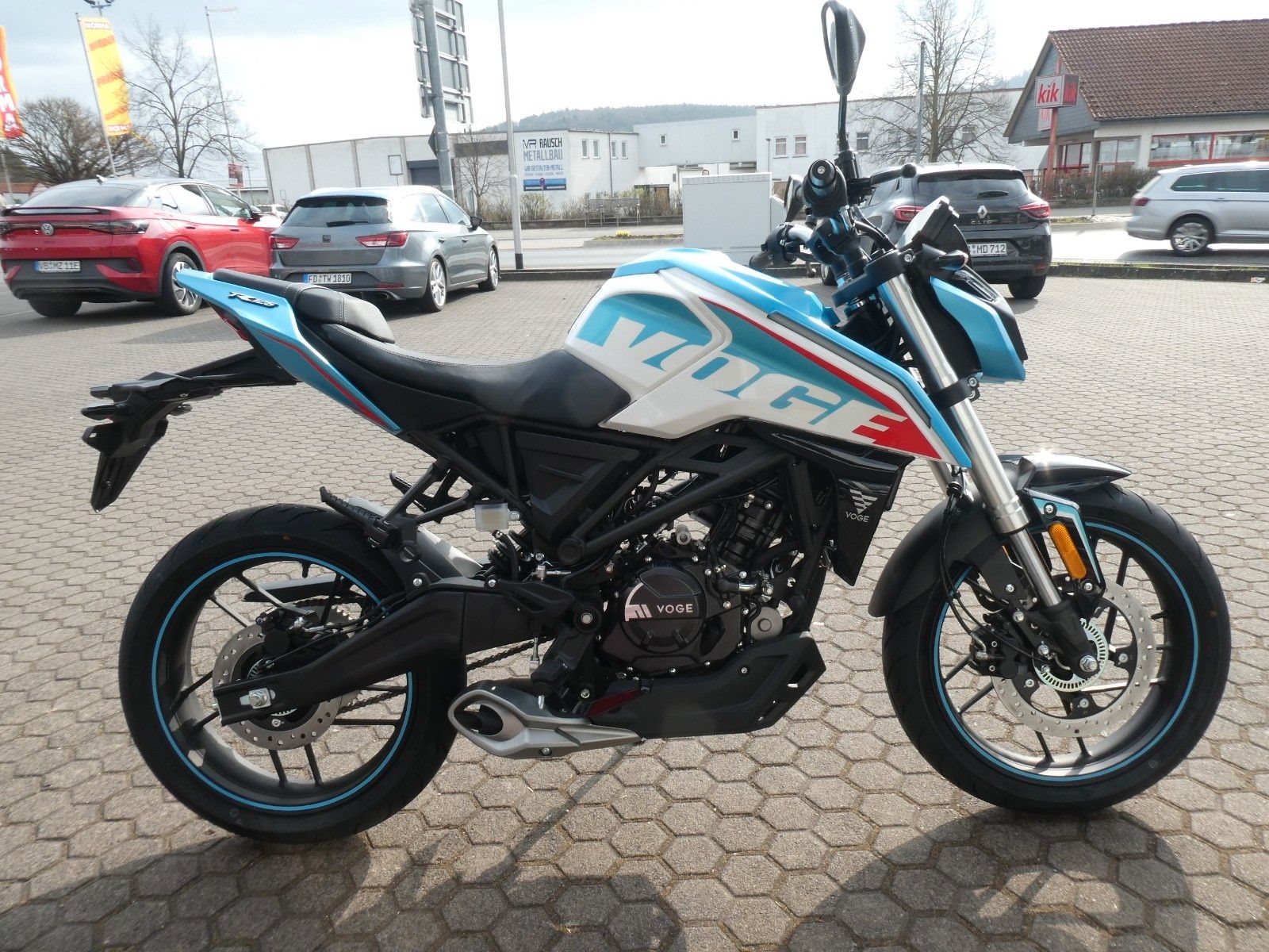 ABS Katalysator Elektrostarter Fahrzeugbeschreibung Die neue Voge R 125 ABS 2025 Preis inkl. Liefernebenkosten des Herstellers ! Winteraktion nur solange Vorrat reicht ! Die R125 ABS ist ein leichtes und sportliches Naked Bike der Einstiegsklasse mit neuester Technik. Das scharfe Handling, der leistungsstarke, flüssigkeitsgekühlte Motor und die Upside-Down-Gabel bereiten sowohl Anfängern mit frischem A1 Führerschein als auch erfahrenen Bikern ein aufregendes Fahrvergnügen.Ausgestattet ist das Motorrad mit modernen High Intensity LED-Leuchten und Blinkern - für optimale Sicht und Sichtbarkeit. Das FI-System sorgt für eine präzise Kraftstoffzufuhr, verbessert die Gasannahme und reduziert den Kraftstoffverbrauch auf ein Minimum. Das vollfarbige LCD-Display liefert alle relevanten Informationen auf einen Blick. Vollfarbiges LCD Display Komplette LED Beleuchtung Upside-Down Gabel USB-Schnittstelle ABS Bremssystem - Motortyp Einzylinder Viertaktmotor mit 4 Ventilen und elektronischer Einspritzung - Hubraum 125 cm - Leistung 11 kW - Getriebe 6 Gänge - Starter Elektrostarter - Tankinhalt 10 Liter - Sitzhöhe 815 mm - Leergewicht 136 kg - Abgaswerte EURO 5+ Zweirad-Center Zöller - Seit über 45 Jahren ! Wir sind Vertragshändler für Honda, Suzuki, Kymco, Hyosung, Voge und Mondial ! Motorräder - Roller - Quad/ATV - UTV/SSV Motorradbekleidung und Zubehör Alle Angebote und Fahrzeuge auf www.zcz.de ! Zweirad-Center Zöller Bahnhofstr. 34 36110 Schlitz Tel: 06642/1666 Fax: 06642/6020 info@zcz.de - www.zcz.de de Fahrzeugdetails