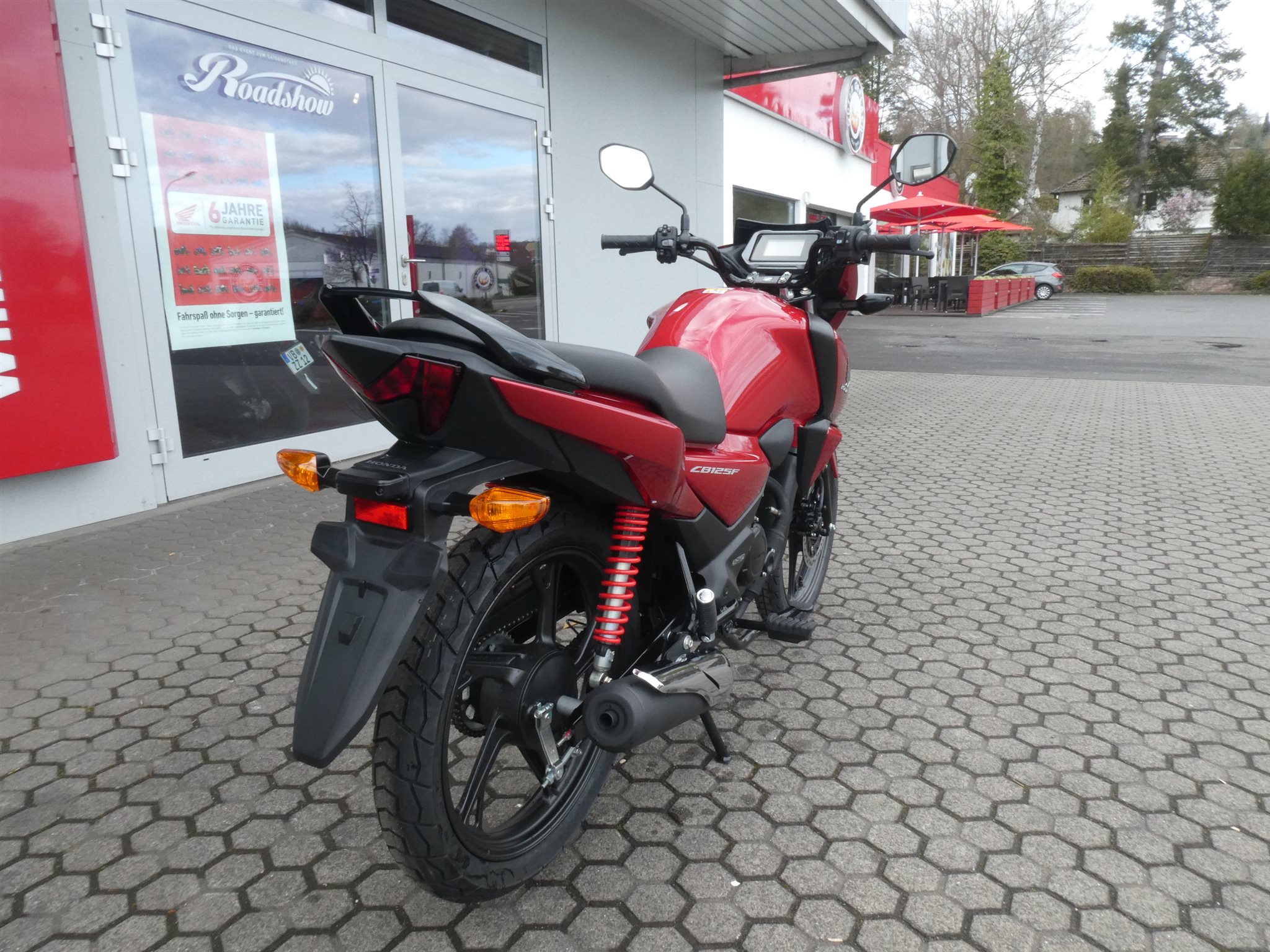 Katalysator Elektrostarter Fahrzeugbeschreibung Die neue Honda CB 125 F 2026 Weitere Farben lieferbar ! Finanzierung und Inzahlungnahme möglich ! Smart Power. Große Reichweite. Wenig Abfall.Das luftgekühlte e-SP Triebwerk (enhanced Smart Power) mit einem Zylinder, zwei Ventilen und PGM-FI-Kraftstoffeinspritzung ist nicht nur robust, sondern auch clever. Er bietet eine intelligente Beschleunigung und eine beeindruckende Kraftstoffeffizienz von 1,4 l/100 km mit einer möglichen Reichweite von bis zu 800 km zwischen zwei Tankfüllungen. Um die Effizienz zu maximieren, schaltet die Start/Stopp-Automatik den Motor an der Ampel oder bei kurzen Stopps automatisch ab und reduziert so die Emissionen und vermeidet unnötigen Kraftstoffverbrauch. Sie funktioniert in jedem Gang und kann mit dem Knopf auf der linken Seite des Schaltgeräts deaktiviert werden. Honda RoadSyncBleib in Kontakt, während du fährst. Mit Honda RoadSync können CB125F-Fahrerinnen und -Fahrer unterwegs auf wichtige Funktionen zugreifen und so jede Fahrt komfortabler gestalten. Die Honda RoadSync App ist sowohl für iOS als auch für Android verfügbar und ermöglicht es dir:* Turn-by-Turn-Navigation