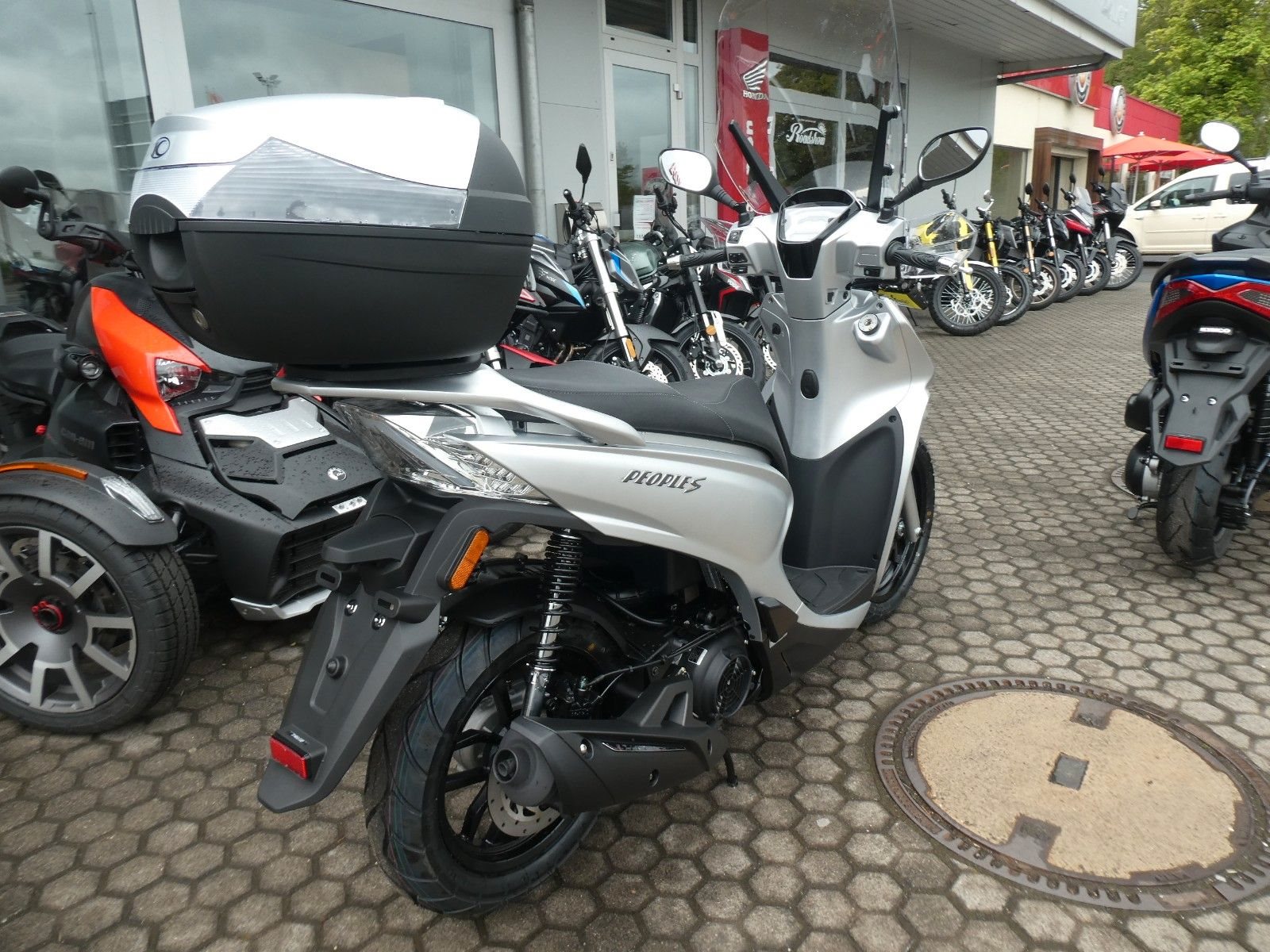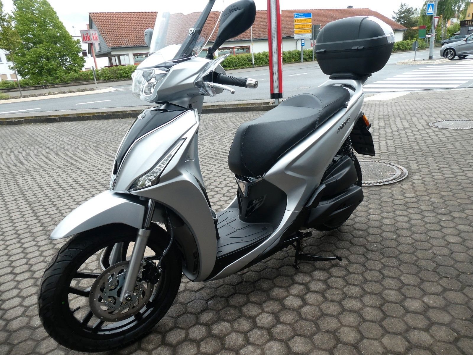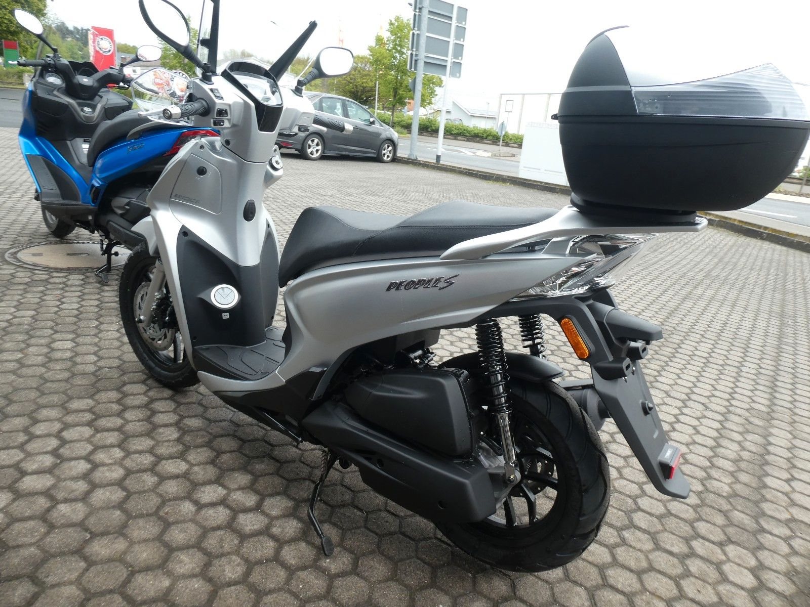 ABS Katalysator Elektrostarter Fahrzeugbeschreibung Kymco New People S 200i ABS Euro 5 Finanzierung und Inzahlungnahme möglich ! Angegebener Preis ist Barzahlungspreis . Der NEW PEOPLE S 200i ABS ist unser kleinster "Kraftroller" im Sortiment. Mit seinen 163 ccm ist er vor allem für Wohnmobilisten interessant, die sich zwar ein möglichst geringes Gewicht für ihren Roller wünschen, aber gleichzeitig mehr als 125 cm Hubraum - denn so werden auch im Ausland, wie etwa Italien, Fahrten auf der Autobahn möglich. Der NEW PEOPLE S 200i ABS überzeugt, wie sein Gegenstück in der 200-Kubik Klasse, mit einer exzellenten Verarbeitung und vielen Extras - darunter das serienmäßig enthaltene Topcase und das große Windschild, welches besonders bei Überlandfahrten seinen Nutzen beweist. Selbstverständlich macht der NEW PEOPLE S 200i ABS mit seinem modernen Euro-5 Motor auch im Stadtverkehr eine gute Figur. Max. Leistung 10,8 kW (14,7 PS) bei 8500 U/min Leergewicht in kg 135 (fahrbereit) zul. Gesamtgewicht in kg 290 Abmessungen (L, H, B) in mm 2085, 1170, 700 Sitzhöhe in mm 800 Tankinhalt in Liter 6,2 Bauart 1-Zyl, 4 Takt gebläsegekühlt 4 Ventile/Zylinder Hubraum in ccm 163 Starter Elektrostarter Kupplung Fliehkraftkupplung Getriebestufenlose Variomatik Federung vorne hydraulische Teleskopgabel Federung hinten Triebsatzschwinge, hydr. gedämpft Bremse vorne 1 Scheibenbremse mit ABS, 260 mm Bremse hinten1 Scheibenbremse mit ABS, 240 mm Reifen vorne 100/80-16 Reifen hinten120/80-14 Abgaswerte EURO 5 / Kraftstoffverbrauch (l/100 km) Ø 2,7 l; C02 Emissionen 62g/km Zweirad-Center Zöller - Seit 45 Jahren ! Wir sind Vertragshändler für Honda, Suzuki, Kymco, Hyosung, Voge und Mondial ! Motorräder - Roller - Quad/ATV - UTV/SSV Motorradbekleidung und Zubehör Alle Angebote und Fahrzeuge auf www.zcz.de ! Fahrzeugdetails