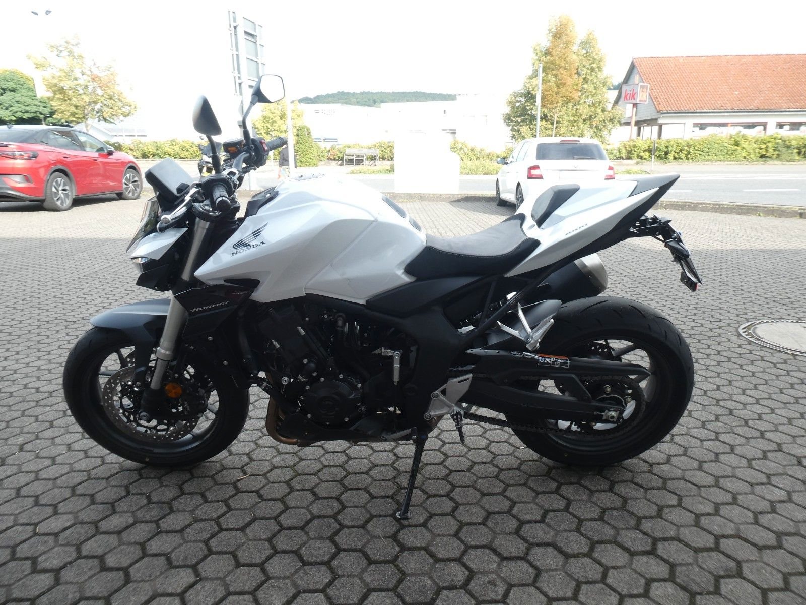 ABS Katalysator Elektrostarter Fahrzeugbeschreibung CB 1000 Hornet Modelljahr 2025 Vorführfahrzeug - Top Zustand ! inkl. Sport und Style-Paket Zubehör u.a. : Lenkerbrücke Alu Kühlerschutz Öleinfüllkappe Felgendekor Fahrerfußrasten Bugspoiler Soziusabdeckung Tankprotektor Windscheibe Schaltassistent kleiner Kennzeichenhalter Bis zu 6 Jahre garantie ab Erstzulassung ! Finanzierung und Inzahlungnahme möglich ! Die Hornet-Familie ist jetzt vollständig und unser Topmodell sticht heraus. Die neue CB1000 Hornet mit ihrem Vierzylindermotor ist ein erstklassiges Naked Bike, das den Asphalt zum Glühen bringt. Throttle By Wire sorgt für präzise Kontrolle, während das Fahrwerk mit der einstellbaren SHOWA 41mm SFF-BP Upside-Down-Gabel und dem Pro-Link-Federbein ausgestattet ist. Die unverfälschte, aggressive Streetfighter-Attitüde wird durch einen markanten LED-Doppelscheinwerfer unterstrichen. Der 5-Zoll-TFT-Farbbildschirm und die Honda RoadSync-Konnektivität sorgen für die nötigen Informationen. Kann es losgehen? Hier ist alles echt. Das ist das Motorrad in seiner rohesten Form, straff definiert. Die kompromisslose Streetfighter-Attitüde der CB1000 Hornet wird durch den markanten, superkompakten LED-Doppelscheinwerfer unterstrichen, der passgenau in der diskreten Frontverkleidung sitzt. Der dezent geschwärzte Rahmen bringt ein starkes Element des geschmeidigen Designs mit sich und unterstreicht die Linienführung ebenso wie der hintere Hilfsrahmen im Spalierstil. Um ihr einen aggressiven Look zu verleihen, sind der Motor, die Räder und die Schwinge ebenfalls in Schwarz gehalten. Und der für die Hornet charakteristische, breitschultrige Kraftstofftank, der sich radikal nach hinten verjüngt, steht für pure Leistung. Der Rennsport liegt in der DNA der CB1000 Hornet. Sein 1.000-cm-DOHC-Vierzylindermotor liefert eine adrenalingeladene Leistung von 111,6 kW (152 PS) bei 11.000 U/min und ein Drehmoment von 104 Nm bei 9.000 U/min. Mit einem Verdichtungsverhältnis von 11,7:1 und neu entwickelten Druckgusskolben ist der Motor so abgestimmt, dass er druckvoll im unteren und mittleren Drehzahlbereich arbeitet und eine präzise Drosselklappensteuerung ermöglicht. Es ist ein ganz besonderes Vergnügen, diese Streetfighter-Maschine in der Stadt zu fahren. Und die auf sofortige Beschleunigung abgestimmte Übersetzung sorgt dafür, dass die CB1000 Hornet in Kurven besonderen Fahrspaß bietet. Die CB1000 Hornet bietet das komplette Paket. Dank der elektronisch gesteuerten Drosselklappe steht dir die gesamte atemberaubende Leistung des Motors mit nur einer Drehung am Gasgriff zur Verfügung. Du hast die Kontrolle. Und das 5-Zoll-TFT-Farbdisplay ermöglicht eine intuitive Modusauswahl über einen einfachen 4-Wege-Schalter am Lenker. Du kannst zwischen den voreingestellten Fahrmodi - Regen, Standard und Sport - und zwei Benutzermodi wählen, die sich in drei Stufen für Motorleistung/Motorbremse und vier Stufen für die Honda Traktionskontrolle (HSTC) sowie Wheelie-Control individuell konfigurieren lassen. Das Display bietet außerdem über die Honda RoadSync-Konnektivität Schritt-für-Schritt-Navigation und jede Menge weitere Features deines Smartphones.