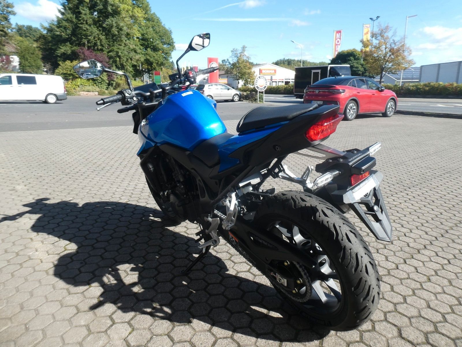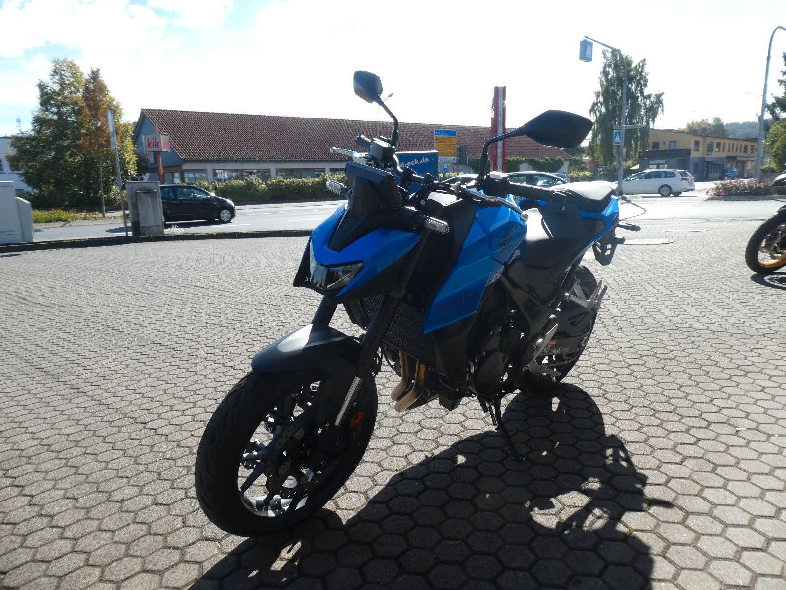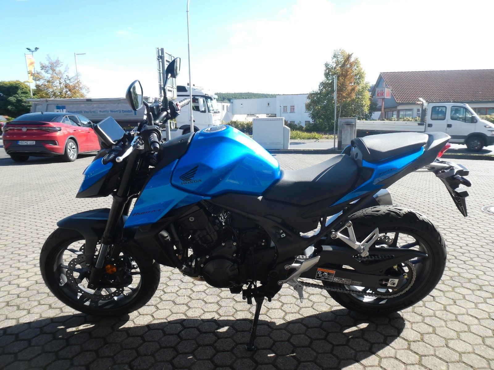 ABS Katalysator Elektrostarter Fahrzeugbeschreibung Honda CB750 Hornet 2025 Aktion Finanzierung und Inzahlungnahme möglich ! Umrüstung 35 kW inkl. Eintragung Aufpreis 100,- Euro Mit der neuen CB750 Hornet stichst du heraus. Diese neue Generation liefert klassenbeste Leistung durch ein leichtes Fahrwerk, das perfekt auf sportliche Leistung abgestimmt ist. Der markante Streetfighter-Stil, kombiniert mit einem neu gestalteten, leistungsstärkeren LED-Doppelscheinwerfer, sorgt dafür, dass du auf der Straße auffällst. Mit dem innovativen Look und der gesteigerten Leistung ist die CB750 Hornet eine Klasse für sich. Die CB750 Hornet beeindruckt nicht zuletzt durch ihr Leistungsgewicht. Die CB750 Hornet ist mit einem Zweizylinder-Reihenmotor ausgestattet, bei dem die Strömungsoptimierung für eine höhere Ansaugleistung sorgt. Die Supersport-Zylinder zeichnen sich durch reduzierte Reibung aus. Dieser leistungsstarke Motor liefert eine Spitzenleistung von 67,5 kW bei 9.500 U/min und ein Drehmoment von 75 Nm bei 7.250 U/min, das schon im mittleren Drehzahlbereich für einen aufregenden Schub sorgt. Auch das Feeling und der Sound sind großartig, dank des charakteristischen Klangs im unteren Drehzahlbereich und eines aufregenden Auspuffsounds. Bei der Betätigung des Gasgriffs spürst du sofort das sanfte Ansprechverhalten beim Anfahren und dass die Fahrt bei niedrigen Geschwindigkeiten noch sanfter wird - ganz ohne Leistungseinbußen. Ein derart starker Motor in einem so leichten Chassis bedeutet, dass für dich nur noch eins zu tun bleibt: festhalten und genießen! Ultimative Kontrolle und Konnektivität Du hast volle Kontrolle über den atemberaubenden Motor der CB750 Hornet. Die Präzision der elektronisch gesteuerten Drosselklappe (TBW) ermöglicht drei Standard-Fahrmodi: "Sport", "Standard" und "Rain" sowie ein anpassbarer User-Modus zur Feinabstimmung (in drei Stufen) der Honda-Drehmomentkontrolle (HSTC) und Wheelie-Control. Du kannst auch die Motorleistung und die Motorbremse individuell anpassen. Das neue 5-Zoll-TFT-Farbdisplay zeichnet sich darüber hinaus durch eine intuitive Benutzeroberfläche sowie Konnektivität per Honda RoadSync aus. Der neue LED-Scheinwerfer der Hornet ist bis zu doppelt so hell und verbessert die Sichtbarkeit, wenn du die Straßenlaternen hinter dir lässt, und die automatische Blinkerabschaltung sorgt dafür, dass du dich auf die Kurvenfahrt konzentrieren kannst. Reiner Streetfighter-Stil Die CB750 Hornet wurde von Grund auf von den ehrgeizigen jungen Designern unserer Forschungs- und Entwicklungsabteilung in Rom entworfen, die technischen Details steuerten unsere japanischen Entwicklungsingenieure bei. Das Resultat: minimalistisches Design und ein kompromissloser Charakter für die Straße. Der von der Kontur eines Hornissenflügels inspirierte Tank zieht die Blicke auf sich, wohingegen der metallisch rote Rahmen und die eloxierten Vorderradgabeln - erhältlich in 2 Lackierungsvarianten - durch lebendige Aggressivität punkten. Die LED-Beleuchtung mit dem neuen Scheinwerfer rundet die Ausstattung ab. Schneller, agiler Spaß Im Mittelpunkt des Designs steht ein Diamantrahmen aus Stahlrohr. Die CB750 Hornet bietet eine Sitzhöhe von 795 mm - ideal für puren Fahrspaß. Dank einer natürlich aufrechten Fahrposition und 190 kg Leergewicht lässt sie sich schnell und präzise steuern. Darüber hinaus überzeugt das Feedback der 41-mm-Showa-SFF-BPT-Upside-Down-Gabel. Die überarbeitete Dämpfungseinstellung des Pro-Link-Federbeins sorgt für mehr Fahrkomfort und eine verbesserte Stoßdämpfung unter härteren Bedingungen. Die kompakten Abmessungen sorgen für präzise Agilität, wobei die radial montierten Vierkolbenbremszangen am Vorderrad kraftvoll in die Scheiben greifen und das Bike schnell abbremsen, damit du jede Kurve der Stadt in Ideallinie ansteuern kannst. Zweirad-Center Zöller - Seit über 45 Jahren ! Wir sind Vertragshändler für Honda, Suzuki, Kymco, Hyosung, Voge und Mondial ! Motorräder - Roller - Quad/ATV - UTV/SSV Motorradbekleidung und Zubehör Alle Angebote und Fahrzeuge auf www.zcz.de ! Zweirad-Center Zöller Bahnhofstr. 34 36110 Schlitz Tel: 06642/1666 Fax: 06642/6020 info@zcz.de - www.zcz.de de Fahrzeugdetails