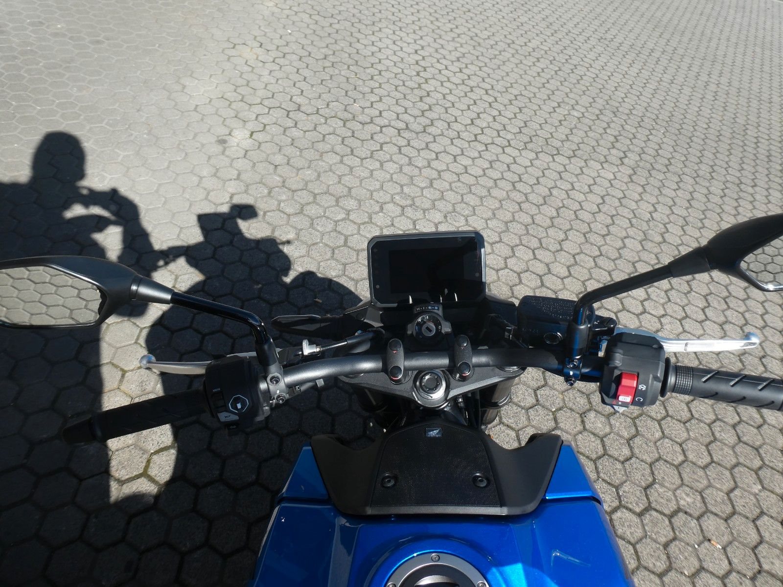 Du hast volle Kontrolle über den atemberaubenden Motor der CB750 Hornet. Die Präzision der elektronisch gesteuerten Drosselklappe (TBW) ermöglicht drei Standard-Fahrmodi: "Sport", "Standard" und "Rain" sowie ein anpassbarer User-Modus zur Feinabstimmung (in drei Stufen) der Honda-Drehmomentkontrolle (HSTC) und Wheelie-Control. Du kannst auch die Motorleistung und die Motorbremse individuell anpassen. Das neue 5-Zoll-TFT-Farbdisplay zeichnet sich darüber hinaus durch eine intuitive Benutzeroberfläche sowie Konnektivität per Honda RoadSync aus. Der neue LED-Scheinwerfer der Hornet ist bis zu doppelt so hell und verbessert die Sichtbarkeit, wenn du die Straßenlaternen hinter dir lässt, und die automatische Blinkerabschaltung sorgt dafür, dass du dich auf die Kurvenfahrt konzentrieren kannst.
