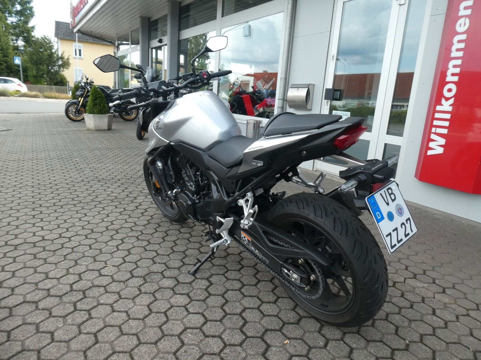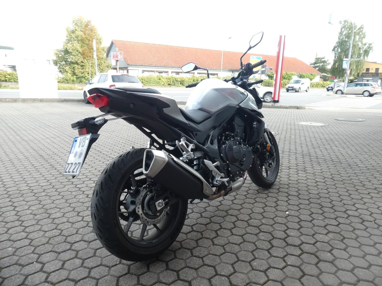 ABS Katalysator Elektrostarter Fahrzeugbeschreibung Honda CB750 Hornet 2025 Aktion Finanzierung und Inzahlungnahme möglich ! Umrüstung 35 kW inkl. Eintragung Aufpreis 100,- Euro Mit der neuen CB750 Hornet stichst du heraus. Diese neue Generation liefert klassenbeste Leistung durch ein leichtes Fahrwerk, das perfekt auf sportliche Leistung abgestimmt ist. Der markante Streetfighter-Stil, kombiniert mit einem neu gestalteten, leistungsstärkeren LED-Doppelscheinwerfer, sorgt dafür, dass du auf der Straße auffällst. Mit dem innovativen Look und der gesteigerten Leistung ist die CB750 Hornet eine Klasse für sich. Die CB750 Hornet beeindruckt nicht zuletzt durch ihr Leistungsgewicht. Die CB750 Hornet ist mit einem Zweizylinder-Reihenmotor ausgestattet, bei dem die Strömungsoptimierung für eine höhere Ansaugleistung sorgt. Die Supersport-Zylinder zeichnen sich durch reduzierte Reibung aus. Dieser leistungsstarke Motor liefert eine Spitzenleistung von 67,5 kW bei 9.500 U/min und ein Drehmoment von 75 Nm bei 7.250 U/min, das schon im mittleren Drehzahlbereich für einen aufregenden Schub sorgt. Auch das Feeling und der Sound sind großartig, dank des charakteristischen Klangs im unteren Drehzahlbereich und eines aufregenden Auspuffsounds. Bei der Betätigung des Gasgriffs spürst du sofort das sanfte Ansprechverhalten beim Anfahren und dass die Fahrt bei niedrigen Geschwindigkeiten noch sanfter wird - ganz ohne Leistungseinbußen. Ein derart starker Motor in einem so leichten Chassis bedeutet, dass für dich nur noch eins zu tun bleibt: festhalten und genießen! Ultimative Kontrolle und Konnektivität Du hast volle Kontrolle über den atemberaubenden Motor der CB750 Hornet. Die Präzision der elektronisch gesteuerten Drosselklappe (TBW) ermöglicht drei Standard-Fahrmodi: "Sport", "Standard" und "Rain" sowie ein anpassbarer User-Modus zur Feinabstimmung (in drei Stufen) der Honda-Drehmomentkontrolle (HSTC) und Wheelie-Control. Du kannst auch die Motorleistung und die Motorbremse individuell anpassen. Das neue 5-Zoll-TFT-Farbdisplay zeichnet sich darüber hinaus durch eine intuitive Benutzeroberfläche sowie Konnektivität per Honda RoadSync aus. Der neue LED-Scheinwerfer der Hornet ist bis zu doppelt so hell und verbessert die Sichtbarkeit, wenn du die Straßenlaternen hinter dir lässt, und die automatische Blinkerabschaltung sorgt dafür, dass du dich auf die Kurvenfahrt konzentrieren kannst. Reiner Streetfighter-Stil Die CB750 Hornet wurde von Grund auf von den ehrgeizigen jungen Designern unserer Forschungs- und Entwicklungsabteilung in Rom entworfen, die technischen Details steuerten unsere japanischen Entwicklungsingenieure bei. Das Resultat: minimalistisches Design und ein kompromissloser Charakter für die Straße. Der von der Kontur eines Hornissenflügels inspirierte Tank zieht die Blicke auf sich, wohingegen der metallisch rote Rahmen und die eloxierten Vorderradgabeln - erhältlich in 2 Lackierungsvarianten - durch lebendige Aggressivität punkten. Die LED-Beleuchtung mit dem neuen Scheinwerfer rundet die Ausstattung ab. Schneller, agiler Spaß Im Mittelpunkt des Designs steht ein Diamantrahmen aus Stahlrohr. Die CB750 Hornet bietet eine Sitzhöhe von 795 mm - ideal für puren Fahrspaß. Dank einer natürlich aufrechten Fahrposition und 190 kg Leergewicht lässt sie sich schnell und präzise steuern. Darüber hinaus überzeugt das Feedback der 41-mm-Showa-SFF-BPT-Upside-Down-Gabel. Die überarbeitete Dämpfungseinstellung des Pro-Link-Federbeins sorgt für mehr Fahrkomfort und eine verbesserte Stoßdämpfung unter härteren Bedingungen. Die kompakten Abmessungen sorgen für präzise Agilität, wobei die radial montierten Vierkolbenbremszangen am Vorderrad kraftvoll in die Scheiben greifen und das Bike schnell abbremsen, damit du jede Kurve der Stadt in Ideallinie ansteuern kannst. Zweirad-Center Zöller - Seit über 45 Jahren ! Wir sind Vertragshändler für Honda, Suzuki, Kymco, Hyosung, Voge und Mondial ! Motorräder - Roller - Quad/ATV - UTV/SSV Motorradbekleidung und Zubehör Alle Angebote und Fahrzeuge auf www.zcz.de ! Zweirad-Center Zöller Bahnhofstr. 34 36110 Schlitz Tel: 06642/1666 Fax: 06642/6020 info@zcz.de - www.zcz.de de Fahrzeugdetails