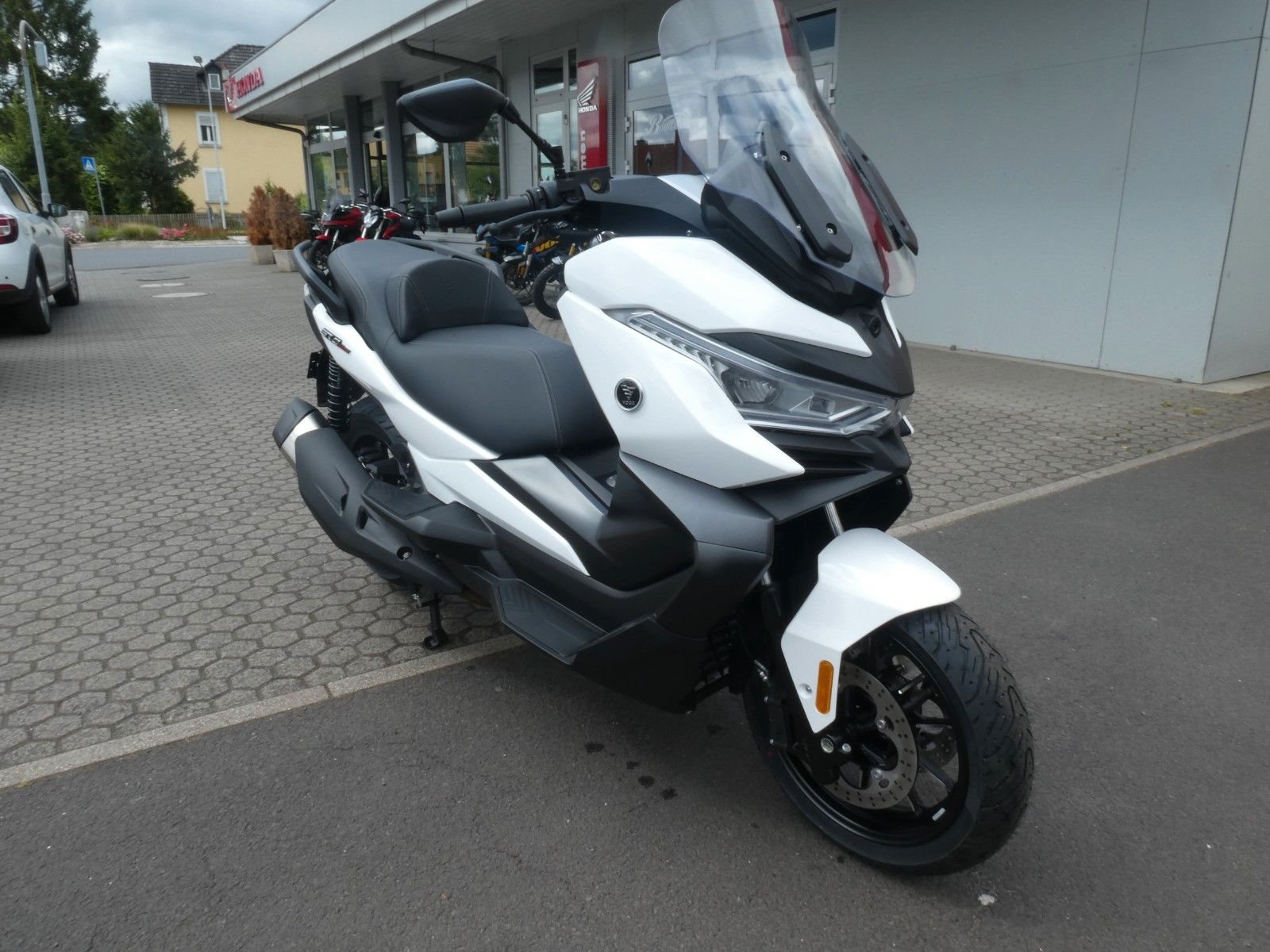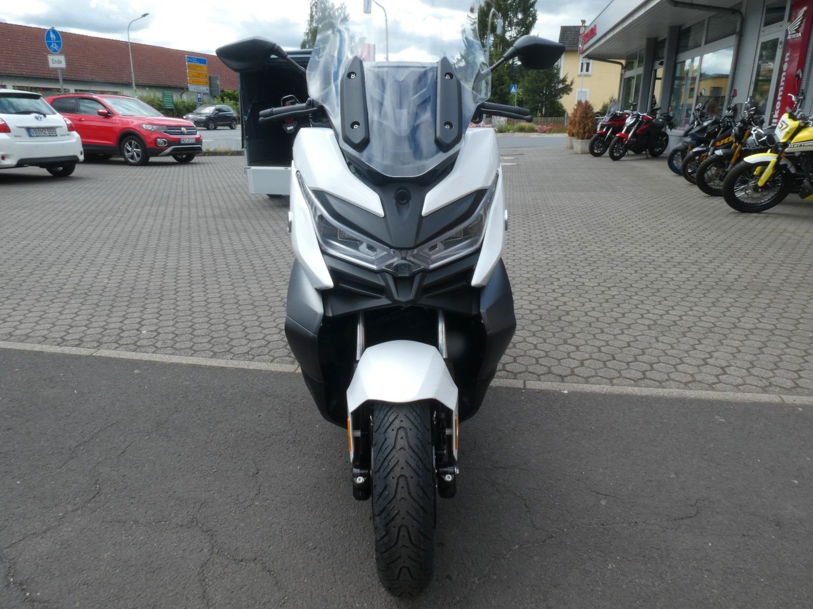 ABS Katalysator Elektrostarter Fahrzeugbeschreibung Der neue VOGE SR4 Max 350 Luxury ABS Finanzierung und Inzahlungnahme möglich ! Angegebener Preis ist inkl. Liefernebenkosten des Herstellers. Der erste Roller in der VOGE Familie mischt in der 350er-Klasse mit und weist neben einem kräftigen Motor und agilem Handling auch eine markante, moderne Optik vor. Hier stimmen aber nicht nur die inneren Werte, auch in Sachen Komfort und Ausstattung ist bei derVOGE SR4 MAX reichlich geboten. Voll-LED Beleuchtung inkl. Kurven- und Tagfahrlicht TCS Traktionskontrolle großes TFT-Farbdisplay mit Smarthphone-Connectiviti Reifendrucküberwachung Keyless-Zündschloß Griffheizung Sitzheizung Elektr. verstellbares Windschild USB-Anschluss Pirelli Reifen uvm. Modell 2024 Motor flüssigkeitsgekühlter 1-Zyl.-Viertaktmotor 4 Ventilen u. elektr. Einspritzung Hubraum 350 ccm Max. Leistung 25 kW (34 PS) bei 7500 U/min Max. Drehmoment 35 Nm bei 6000 U/min Getriebe stufenlose Variomatik Kupplung Fliehkraft Abmessungen (LxBxH) 2185 mm x 805 mm x 1390 mm Sitzhöhe 780 mm Gewicht fahrfertig 214 kg Tankinhalt 12,8 L Reifen (vorne/hinten) 120/70-15 | 150/70-14 Bremsemit 2 Bremsscheiben vorne (265 mm) mit 4 Kolben-Bremssattel und 1 Bremsscheibe hinten (265 mm) mit ABS Radaufhängung (vorne) hydraulische Teleskopgabel Radaufhängung (hinten)Triebsatzschwinge, hydraulisch gedämpft (2 Federbeine mit verstellbarer Federvorspannung) Abgaswerte EURO 5 / Kraftstoffverbrauch (l/100 km) Ø 3,6l; CO2 Emissionen 84g/km Zweirad-Center Zöller - Seit über 45 Jahren ! Wir sind Vertragshändler für Honda, Suzuki, Kymco, Hyosung, Voge und Mondial ! Motorräder - Roller - Quad/ATV - UTV/SSV Motorradbekleidung und Zubehör Alle Angebote und Fahrzeuge auf www.zcz.de ! Fahrzeugdetails