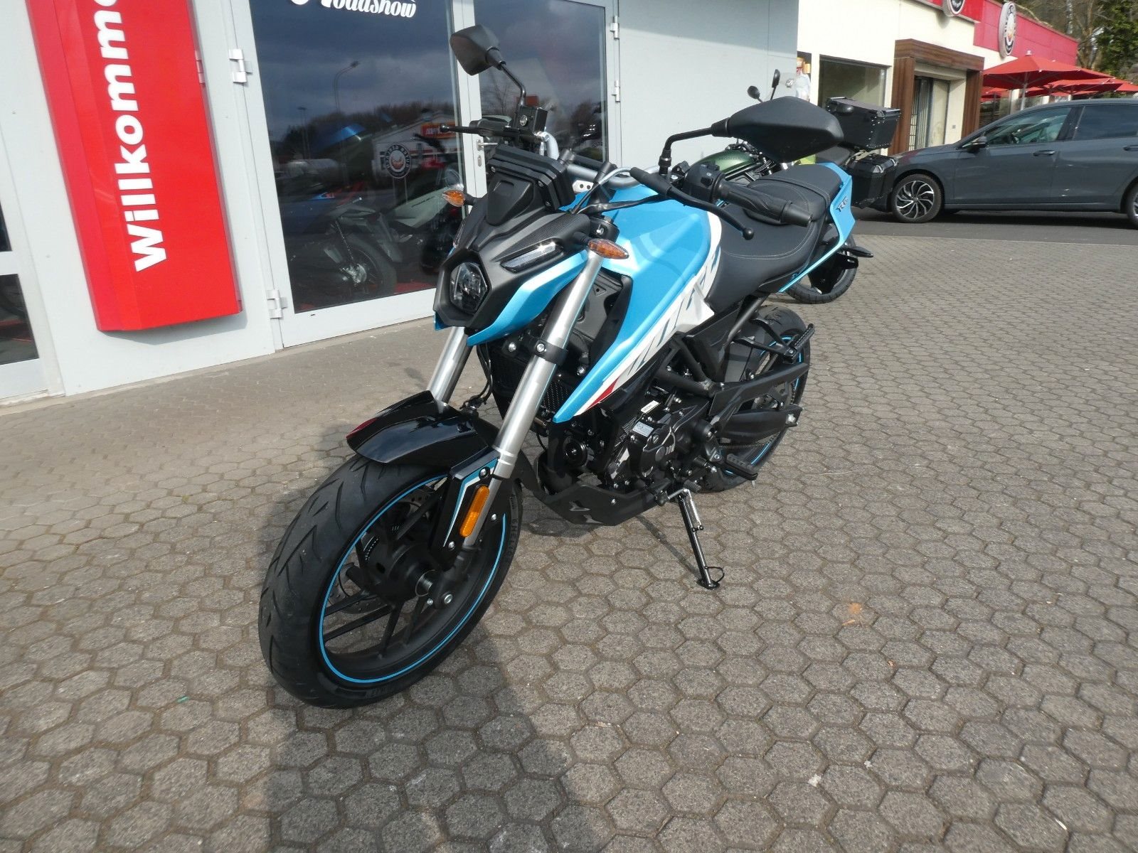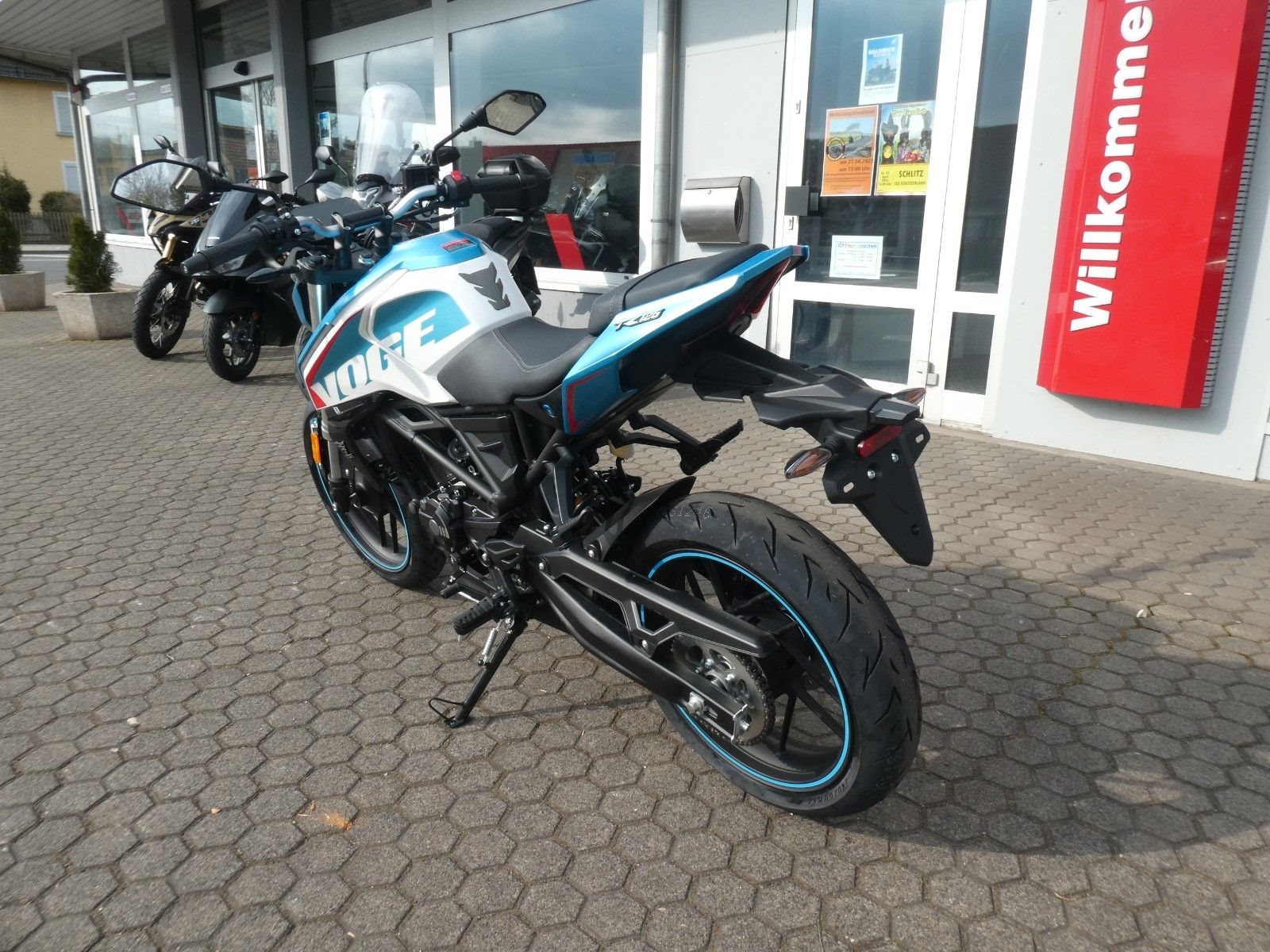 ABS Katalysator Elektrostarter Fahrzeugbeschreibung Die neue Voge R 125 ABS 2025 Preis inkl. Liefernebenkosten des Herstellers ! Erhältlich in schwarz und weiß/blau - ggf. Lieferzeiten auf Anfrage ! Die R125 ABS ist ein leichtes und sportliches Naked Bike der Einstiegsklasse mit neuester Technik. Das scharfe Handling, der leistungsstarke, flüssigkeitsgekühlte Motor und die Upside-Down-Gabel bereiten sowohl Anfängern mit frischem A1 Führerschein als auch erfahrenen Bikern ein aufregendes Fahrvergnügen.Ausgestattet ist das Motorrad mit modernen High Intensity LED-Leuchten und Blinkern - für optimale Sicht und Sichtbarkeit. Das FI-System sorgt für eine präzise Kraftstoffzufuhr, verbessert die Gasannahme und reduziert den Kraftstoffverbrauch auf ein Minimum. Das vollfarbige LCD-Display liefert alle relevanten Informationen auf einen Blick. Vollfarbiges LCD Display Komplette LED Beleuchtung Upside-Down Gabel USB-Schnittstelle ABS Bremssystem - Motortyp Einzylinder Viertaktmotor mit 4 Ventilen und elektronischer Einspritzung - Hubraum 125 cm - Leistung 11 kW - Getriebe 6 Gänge - Starter Elektrostarter - Tankinhalt 10 Liter - Sitzhöhe 815 mm - Leergewicht 136 kg - Abgaswerte EURO 5+ Zweirad-Center Zöller - Seit über 45 Jahren ! Wir sind Vertragshändler für Honda, Suzuki, Kymco, Hyosung, Voge und Mondial ! Motorräder - Roller - Quad/ATV - UTV/SSV Motorradbekleidung und Zubehör Alle Angebote und Fahrzeuge auf www.zcz.de ! Zweirad-Center Zöller Bahnhofstr. 34 36110 Schlitz Tel: 06642/1666 Fax: 06642/6020 info@zcz.de - www.zcz.de de Fahrzeugdetails