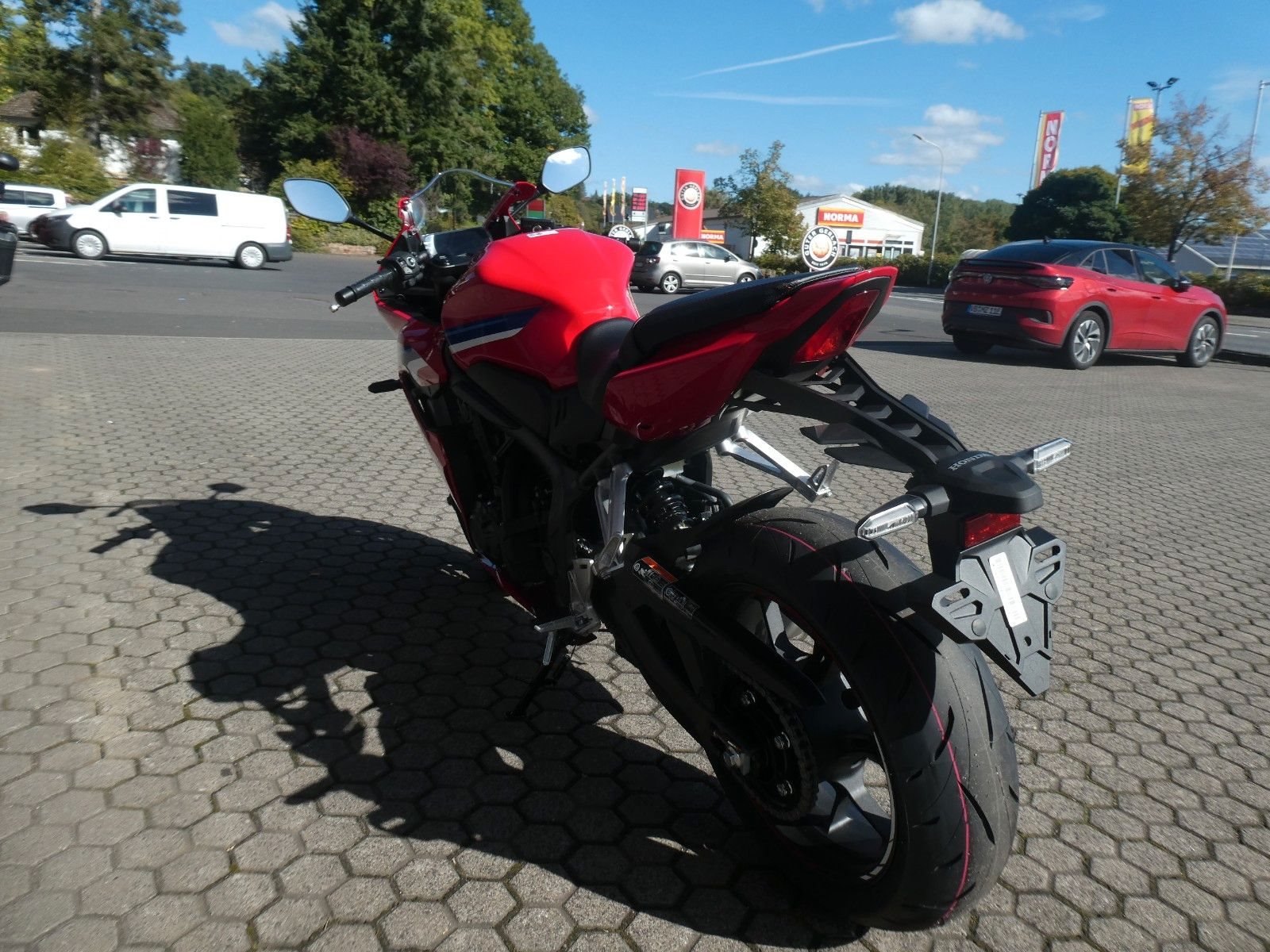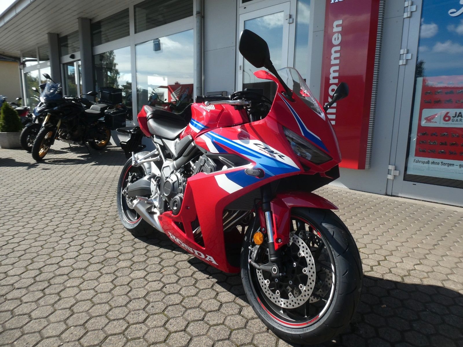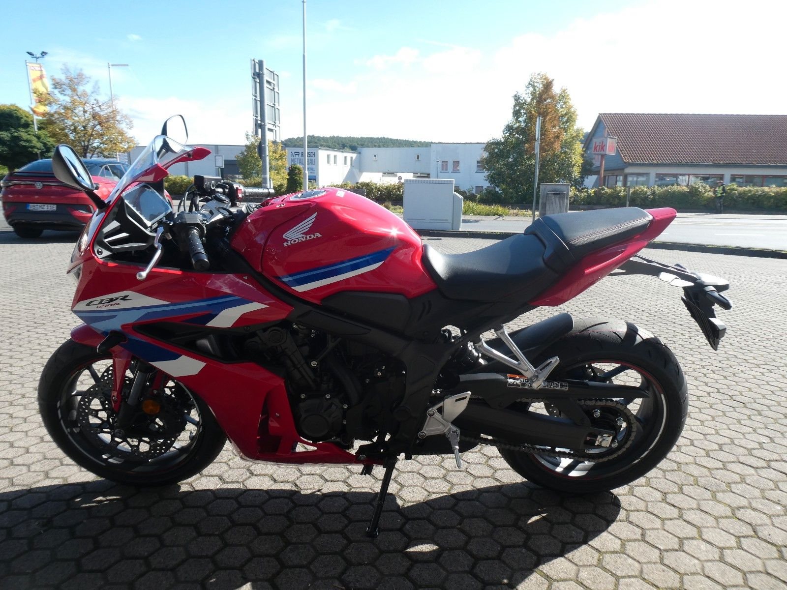 ABS Katalysator Elektrostarter Fahrzeugbeschreibung Honda CBR 650 R Finanzierung und Inzahlungnahme möglich ! Angegebener Preis ist inkl. Liefernebenkosten des Herstellers. Umrüstung auf 35 kW gegen Aufpreis von 250 Euro möglich ! Mittelklasse-Sportmotorräder mit Vierzylindermotor sind rare Kostbarkeiten. So wie die CBR650R. Der Sound des Reihenmotors mit robuster Kraftentfaltung über den gesamten Drehzahlbereich erinnert an ein Flugzeugtriebwerk. Auf Wunsch übernimmt die elektronische Steuerung das Kuppeln. Das aggressive neue Design orientiert sich an der CBR1000RR-R Fireblade. Zur hochwertigen Ausstattung dieses Juwels unter den Sportmotorrädern gehören das neue TFT-Display und Konnektivität per Honda RoadSync. Vier gewinnt Der DOHC-Reihenmotor mit vier Zylindern und 16 Ventilen leistet in der Spitze 70 kW/95,2 PS bei einer Drehzahl von bis zu 12.000 U/min. Das Drehmoment von 63 Nm sorgt für reichlich Beschleunigung bei der Kurvenausfahrt. Für Fahrer mit A2-Führerschein ist eine Drosselung auf 35 kW möglich, die sich nach dem Erwerb des A-Führerscheins aufheben lässt. Und da Leistung Kontrolle braucht, verhindert die Anti-Hopping-Kupplung das Blockieren des Hinterrads bei starkem Bremsen und Herunterschalten. In Kontakt bleiben Dieses Motorrad hat alles, was du brauchst. Das brandneue 5-Zoll-TFT-Farbdisplay mit hintergrundbeleuchteter Steuerung bei natürlicher Handhaltung am Lenker lässt sich unter allen Bedingungen besser ablesen. Bei beiden Komponenten wurde höchster Wert auf Bedienkomfort gelegt und das Display verfügt über eine Anti-Glare-Beschichtung. Außerdem ist für umfassende Konnektivität über die Honda RoadSync App gesorgt. Du erhältst per Android- und iOS-Smartphones Zugriff auf Turn-by-Turn-Bildschirmnavigation. Außerdem kannst du Anrufe tätigen und entgegennehmen oder Musik hören. Zweirad-Center Zöller - Seit über 45 Jahren ! Wir sind Vertragshändler für Honda, Suzuki, Kymco, Hyosung, Voge und Mondial ! Motorräder - Roller - Quad/ATV - UTV/SSV Motorradbekleidung und Zubehör Alle Angebote und Fahrzeuge auf www.zcz.de ! Fahrzeugdetails