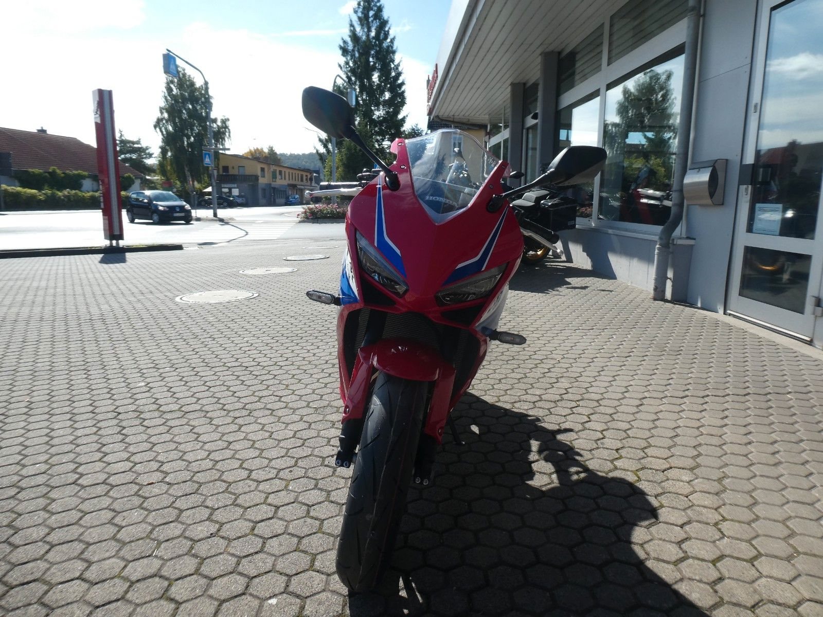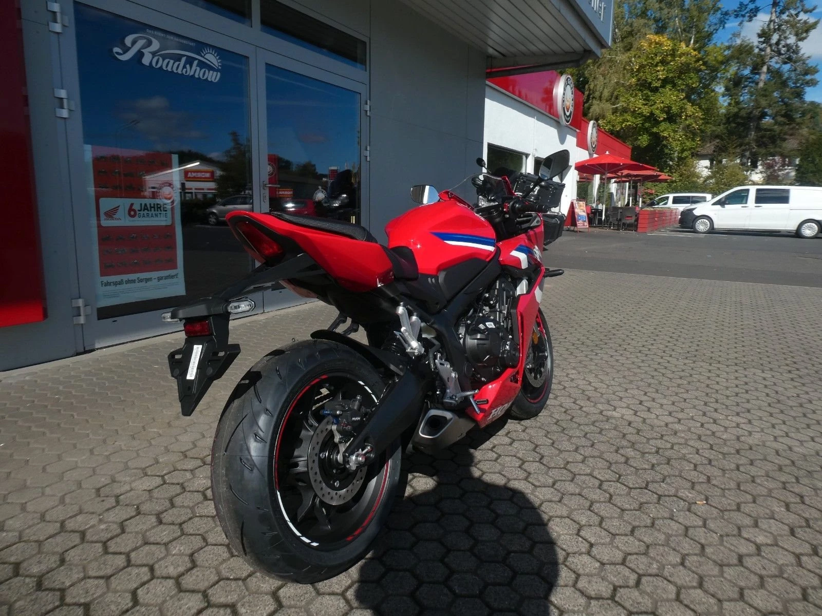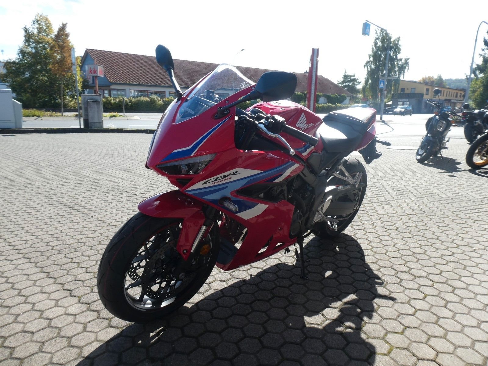 ABS Katalysator Elektrostarter Fahrzeugbeschreibung Honda CBR 650 R Finanzierung und Inzahlungnahme möglich ! Angegebener Preis ist inkl. Liefernebenkosten des Herstellers. Umrüstung auf 35 kW gegen Aufpreis von 250 Euro möglich ! Mittelklasse-Sportmotorräder mit Vierzylindermotor sind rare Kostbarkeiten. So wie die CBR650R. Der Sound des Reihenmotors mit robuster Kraftentfaltung über den gesamten Drehzahlbereich erinnert an ein Flugzeugtriebwerk. Auf Wunsch übernimmt die elektronische Steuerung das Kuppeln. Das aggressive neue Design orientiert sich an der CBR1000RR-R Fireblade. Zur hochwertigen Ausstattung dieses Juwels unter den Sportmotorrädern gehören das neue TFT-Display und Konnektivität per Honda RoadSync. Vier gewinnt Der DOHC-Reihenmotor mit vier Zylindern und 16 Ventilen leistet in der Spitze 70 kW/95,2 PS bei einer Drehzahl von bis zu 12.000 U/min. Das Drehmoment von 63 Nm sorgt für reichlich Beschleunigung bei der Kurvenausfahrt. Für Fahrer mit A2-Führerschein ist eine Drosselung auf 35 kW möglich, die sich nach dem Erwerb des A-Führerscheins aufheben lässt. Und da Leistung Kontrolle braucht, verhindert die Anti-Hopping-Kupplung das Blockieren des Hinterrads bei starkem Bremsen und Herunterschalten. In Kontakt bleiben Dieses Motorrad hat alles, was du brauchst. Das brandneue 5-Zoll-TFT-Farbdisplay mit hintergrundbeleuchteter Steuerung bei natürlicher Handhaltung am Lenker lässt sich unter allen Bedingungen besser ablesen. Bei beiden Komponenten wurde höchster Wert auf Bedienkomfort gelegt und das Display verfügt über eine Anti-Glare-Beschichtung. Außerdem ist für umfassende Konnektivität über die Honda RoadSync App gesorgt. Du erhältst per Android- und iOS-Smartphones Zugriff auf Turn-by-Turn-Bildschirmnavigation. Außerdem kannst du Anrufe tätigen und entgegennehmen oder Musik hören. Zweirad-Center Zöller - Seit über 45 Jahren ! Wir sind Vertragshändler für Honda, Suzuki, Kymco, Hyosung, Voge und Mondial ! Motorräder - Roller - Quad/ATV - UTV/SSV Motorradbekleidung und Zubehör Alle Angebote und Fahrzeuge auf www.zcz.de ! Fahrzeugdetails