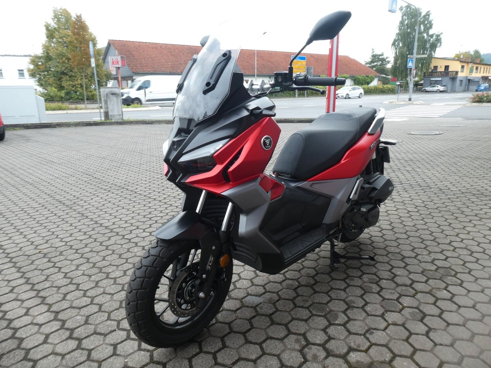 ABS Katalysator Elektrostarter Fahrzeugbeschreibung Der neue VOGE SR1 ADV 125 ABS TCS E5+ Vorführfahrzeug Inspektion und HU neu vor Kauf ! Finanzierung und Inzahlungnahme möglich ! **Angegebener Preis ist inkl. Liefernebenkosten des Herstellers. Der VOGE SR1 ADV 125 ABS TCS ist die Verkörperung von erfrischender Vielseitigkeit und moderner Sicherheitstechnologie. Mit seinem 125-ccm-Einzylindermotor und 8,5 kW (11,6 PS) Leistung eignet er sich ideal für kurze, kurvige Stadtfahrten und längere Strecken.Highlights wie ABS, Traktionskontrolle (TCS), ein verstellbares Windschild und Voll-LED-Beleuchtung garantieren Komfort und Sicherheit. Mit nur 141 kg Leergewicht und einem sparsamen Verbrauch von 2,5 l/100 km ist der Roller für die unterschiedlichsten Anforderungen perfekt geeignet. Motor wassergekühlter 1-Zylinder-Viertaktmotor mit 2 Ventilen und elektronischer Einspritzung Hubraum 125 ccm Max. Leistung 8,5 kW (11,6 PS) bei 8500 U/min Max. Drehmoment 11 Nm bei 6500 U/min Getriebe stufenlose Variomatik Kupplung Fliehkraft Abmessungen (LxBxH) 1970mm x 770 mm x 1300 mm Radstand 1330 mm Gewicht fahrfertig 141 kg Tankinhalt 9 L Reifen (vorne/hinten) 110/80-14 | 130/70-13 Bremse Bremsscheibe Ø 240 mm / Bremsscheibe Ø 220 mm mit ABS Radaufhängung (vorne) Telegabel Ø 31 mm, 121 mm Federweg Radaufhängung (hinten) 2 Federbeine, 130 mm Federweg AbgaswerteEURO 5+ / Kraftstoffverbrauch (l/100 km) Ø 2,5l; CO2 Emissionen 57g/km Zweirad-Center Zöller - Seit über 45 Jahren ! Wir sind Vertragshändler für Honda, Suzuki, Kymco, Hyosung, Voge und Mondial ! Motorräder - Roller - Quad/ATV - UTV/SSV Motorradbekleidung und Zubehör Alle Angebote und Fahrzeuge auf www.zcz.de ! Fahrzeugdetails