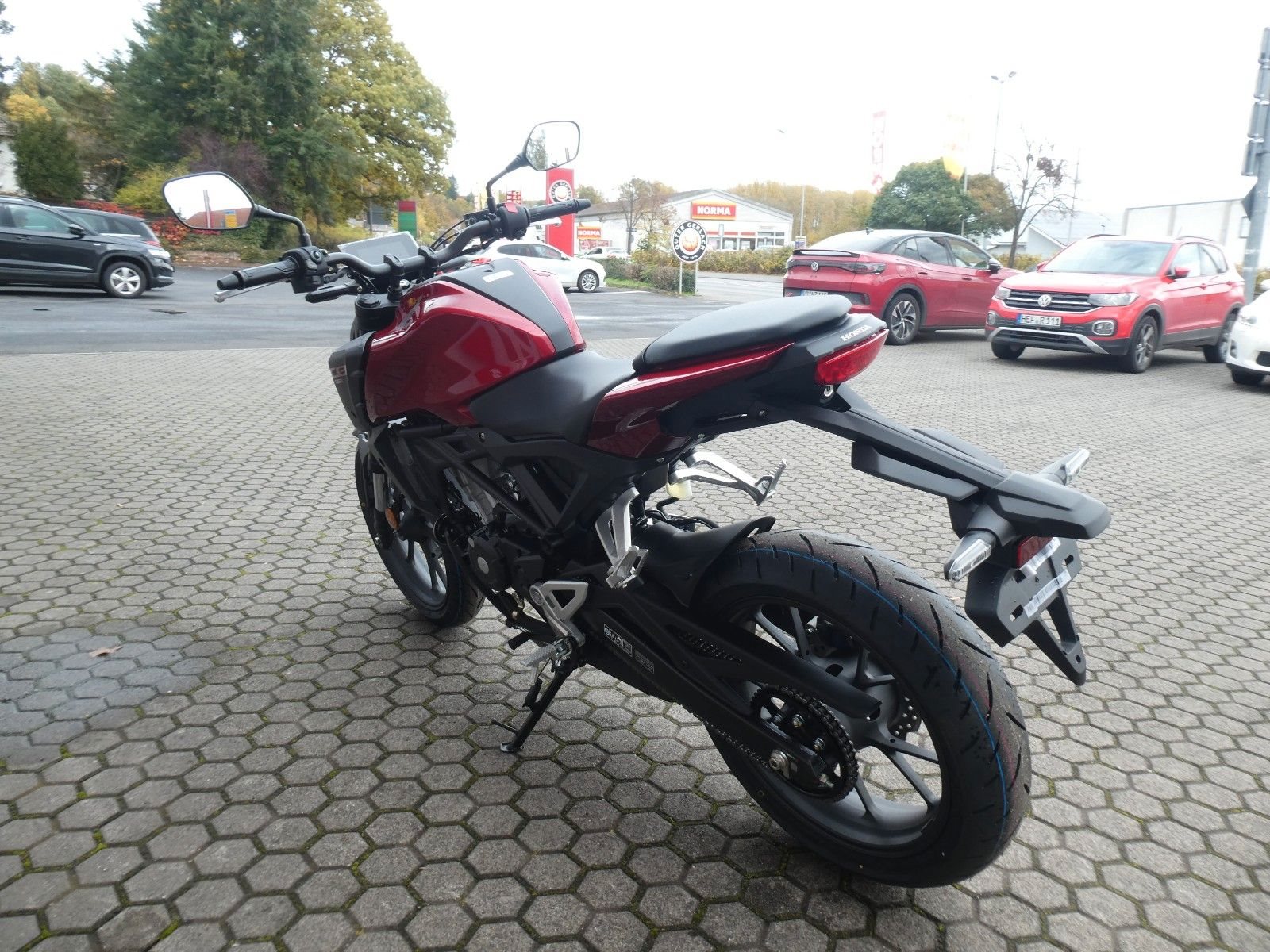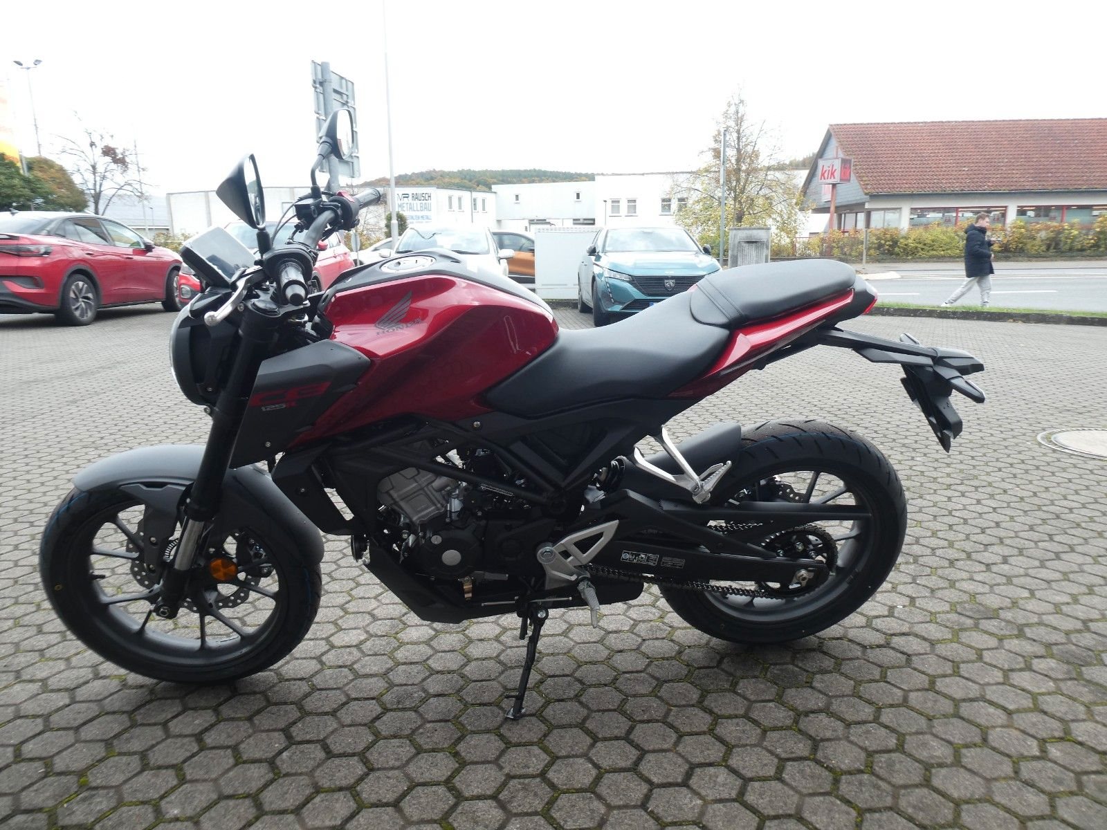ABS Katalysator Elektrostarter Fahrzeugbeschreibung Honda CB125 R 2025 Nur solange Vorrat reicht ! Erhältlich in blau, rot und weiß - bitte anfragen ! Finanzierung und Inzahlungnahme möglich ! Die CB125R sieht nicht nur gut aus, sondern fährt dank ihrer geballten Leistung auch so gut. Das schlanke und minimalistische Design sorgt für einen unverwechselbaren Look, der das Bike von der Masse abhebt. Die einfache Handhabung und die ausgefeilte Technik sorgen für eine präzise Steuerung, die perfekt für neue A1- oder B196-Führerscheininhaber ist. Markantes Styling und eine Menge Power Als Teil der Neo Sports Café-Produktreihe setzt die kleine Schwester der CB1000R ein klares Zeichen. Die aktualisierte CB125R zeichnet sich durch ein kühnes Design mit modernen Merkmalen aus. Der Stahlrohrrahmen und der runde Scheinwerfer mit der markanten Einfassung vervollständigen ein unverwechselbares Profil. Gemeinsam mit der LED-Beleuchtung und dem 5-Zoll TFT-Farbdisplay verleiht dies der CB125R eine gewisse Raffinesse.Was aber wirklich auffällt, ist die geballte Leistung des 125er DOHC-Motors. Die Präzision der Showa SFF-BP USD-Federgabeln sorgt für ein sanfteres Fahrverhalten und ein angenehmeres Fahrgefühl, selbst auf holprigen Straßen. Die Essenz des Neo Sports Café: Die perfekte Verbindung von Fahrer und Motorrad Die Neo Sports Café-Familie überzeugt durch den eleganten Minimalismus der Technik, markant und brutal gutaussehend. Jedes Modell verfügt über eine erstklassige Ausstattung, wobei der Schwerpunkt auf hochwertiger Hardware liegt. Weniger ist mehr, wenn es um die aktualisierte CB125R geht. Ein 125er-Straßenmotorrad mit klaren Linien, auffälliger LED-Beleuchtung und markanten Kurven: Das ist Retro-Minimalismus, der sofort auffällt. Zweirad-Center Zöller - Seit über 45 Jahren ! Wir sind Vertragshändler für Honda, Suzuki, Kymco, Hyosung, Voge und Mondial ! Motorräder - Roller - Quad/ATV - UTV/SSV Motorradbekleidung und Zubehör Alle Angebote und Fahrzeuge auf www.zcz.de ! Zweirad-Center Zöller Bahnhofstr. 34 36110 Schlitz Tel: 06642/1666 Fax: 06642/6020 info@zcz.de - www.zcz.de de Fahrzeugdetails