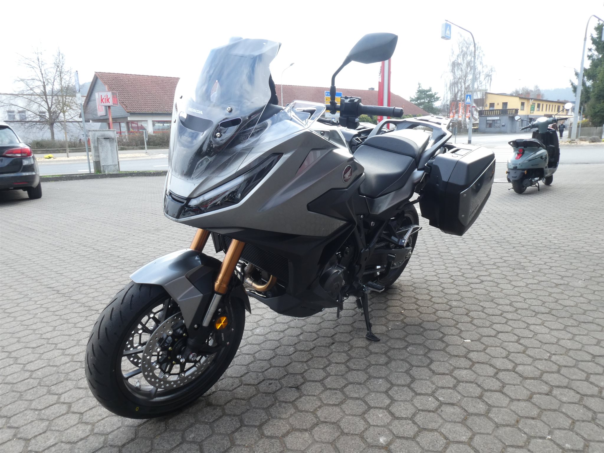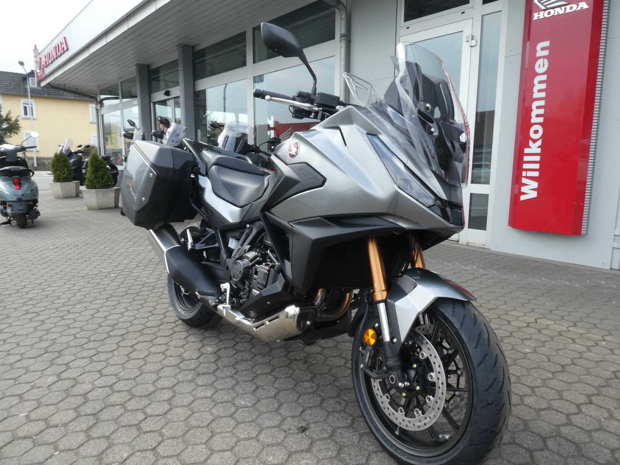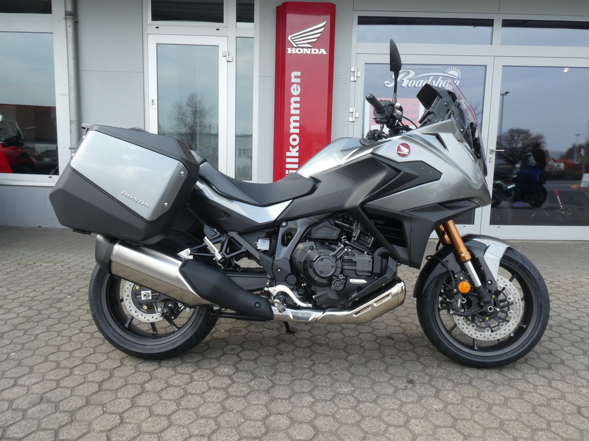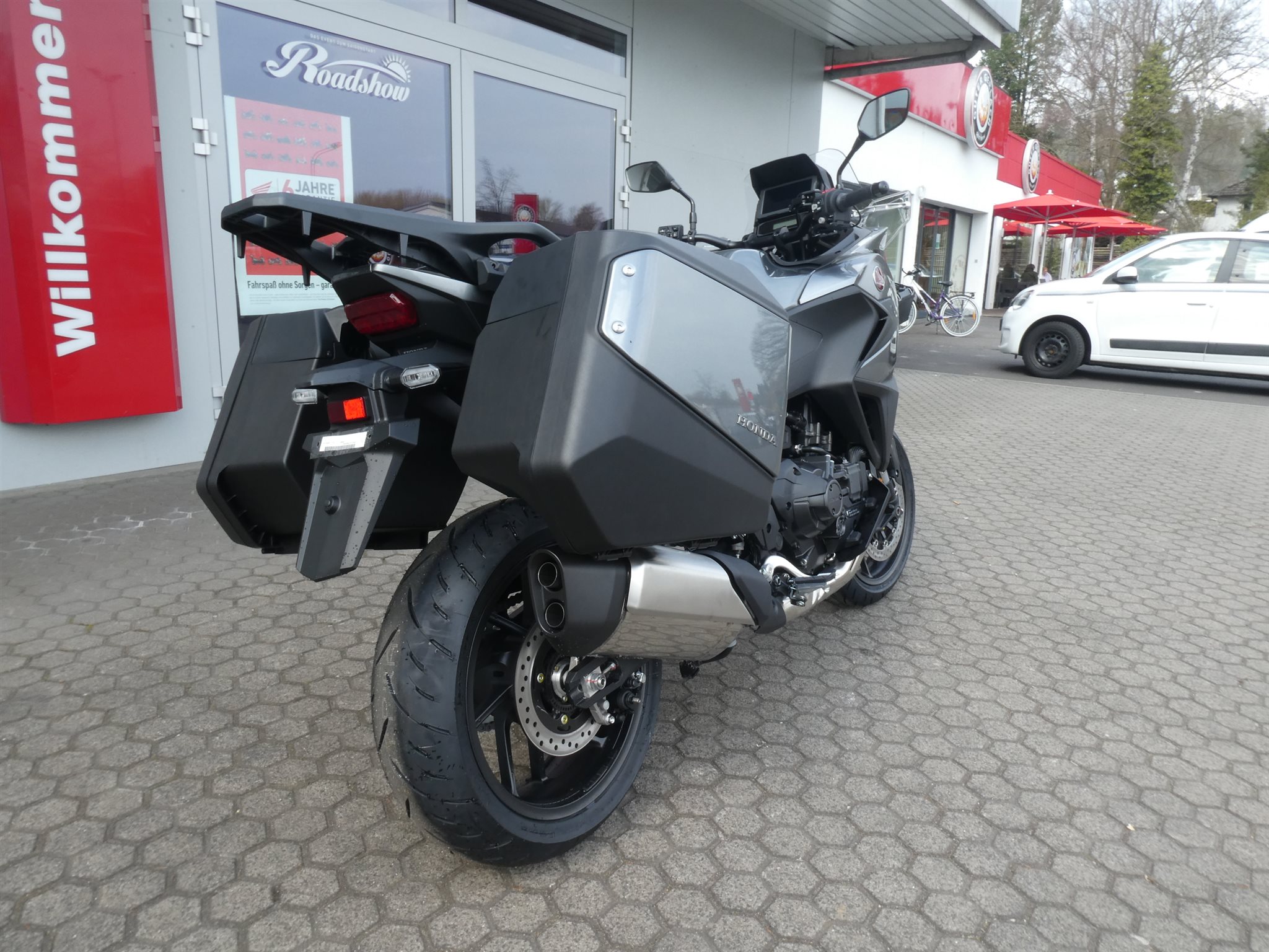 ABS Katalysator Elektrostarter Fahrzeugbeschreibung Honda NT 1100 DCT ES 2026 mit DCT-Getriebe und Showa EERA Fahrwerk Finanzierung und Inzahlungnahme möglich ! Angegebener Preis ist inkl. Liefernebenkosten des Herstellers ! Verbesserte elektrisch einstellbare Aufhängung Genau darauf hast du gewartet! Das Showa Electronically Equipped Ride Adjustment (Showa-EERAT)-Fahrwerk ist jetzt als Extra verfügbar. Dank der speziell für die NT1100 entwickelten Konfiguration stellt das System sofort anhand der von der IMU und anderen Sensoren erfassten Werte für Geschwindigkeit und Fahrdynamik die optimale Dämpfung ein. Die Anpassung erfolgt in Echtzeit. Beim Bremsen wird das Abtauchen kontrolliert und Stabilität gewahrt. Das Fahrverhalten ist verglichen mit einer herkömmlichen Konfiguration herausragend. Und Showa-EERAT reagiert automatisch auf den ausgewählten Fahrmodus: Der TOUR-Modus bietet eine harte Dämpfung für höhere Geschwindigkeiten, der URBAN-Modus bietet eine mittlere Balance für mehr Komfort und der RAIN-Modus sorgt mit einer geringeren Dämpfung für reibungsloses Ansprechverhalten und entspanntes Cruisen. Eine individuelle Anpassung ist möglich und die Federvorspannung der Hinterradaufhängung lässt sich während der Fahrt einstellen. Die NT1100 ist ein intelligenter, anspruchsvoller und durch und durch moderner Tourer. Und wir haben ihr gerade ein Upgrade verpasst. Ein höheres Drehmoment im unteren und mittleren Drehzahlbereich verbessert jetzt die Beschleunigung des Zweizylindermotors. Die neue sportliche Verkleidung bietet ein einfach verstellbares Windschild sowie LED-Scheinwerfer mit neuem Tagfahrlicht. Die neue IMU-Steuerung (Intertial Measurement Unit) bildet jetzt das Herzstück der Elektronik, das Handling wird auf die Fahrweise abgestimmt. Das verbesserte Ansprechverhalten des optionalen Doppelkupplungsgetriebes bei niedrigen Geschwindigkeiten macht ebenso wie die neue elektrisch einstellbare Aufhängung bei der NT1100 den Unterschied. Absolute Fahrperfektion. Die perfekte Reisebegleitung Es sind die kleinen Details, die die neue NT1100 zum perfekten Begleiter auf langen Touren machen. Die Verbesserungen wurden von den Personen angeregt, auf die es wirklich ankommt - den NT1100-Fahrern. Die neue dynamische Frontverkleidung ist nicht nur elegant und bei hohen Geschwindigkeiten besonders aerodynamisch, sondern bietet auch besseren Windschutz und reduziert die Ermüdung. Das 5-stufige Windschild kann jetzt im Sitzen (und im Stand) mit einer Hand verstellt werden. Die Deckel der beiden Seitenkoffer sind jetzt tiefer und schaffen so mehr Platz, genug für einen Integralhelm. Und das vordere Schutzblech reicht jetzt 150 mm weiter zurück, wodurch das Wasser besser abgeleitet wird. Der große Tank mit einem Fassungsvermögen von 20 Litern erhöht die Reichweite - bis zu 400 km mit einer Tankfüllung. Bei jeder Gelegenheiten die passende Performance Ein Drehmoment, das genau im richtigen Moment da ist. Vor allem, wenn du mit Sozius und Gepäck überholst. Der OHC-Zweizylindermotor mit 1.084 cm Hubraum bietet daher vom unteren bis zum mittleren Drehzahlbereich 7 % mehr Drehmoment. Mehr Leistung im mittleren Drehzahlbereich dank eines höheren Verdichtungsverhältnisses von 10,5:1, einer neuen Kurbelwelle und neuen Pleueln. Das Ansprechverhalten der elektronisch gesteuerten Drosselklappe (Throttle By Wire, TBW) wurde im Hinblick auf eine lineare Gasannahme optimiert, um so bei Leistungssteigerungen eine gleichmäßigere Reaktion zu ermöglichen. In allen Gängen ist bei der Beschleunigung der Unterschied sofort offensichtlich. Außerdem kannst du mit dem effizienten Zweizylindermotor bis zu 20 km pro Liter Kraftstoff zurücklegen. Und der pulsierende Rhythmus des neuen Auspuffsounds bietet die perfekte Kulisse für eine lange Fahrt. Zweirad-Center Zöller - Seit über 45 Jahren ! Wir sind Vertragshändler für Honda, Suzuki, Kymco, Hyosung, Voge und Mondial ! Motorräder - Roller - Quad/ATV - UTV/SSV Motorradbekleidung und Zubehör Alle Angebote und Fahrzeuge auf www.zcz.de ! Zweirad-Center Zöller Bahnhofstr. 34 36110 Schlitz Tel: 06642/1666 Fax: 06642/6020 info(at)zcz.de - www.zcz.de Fahrzeugdetails